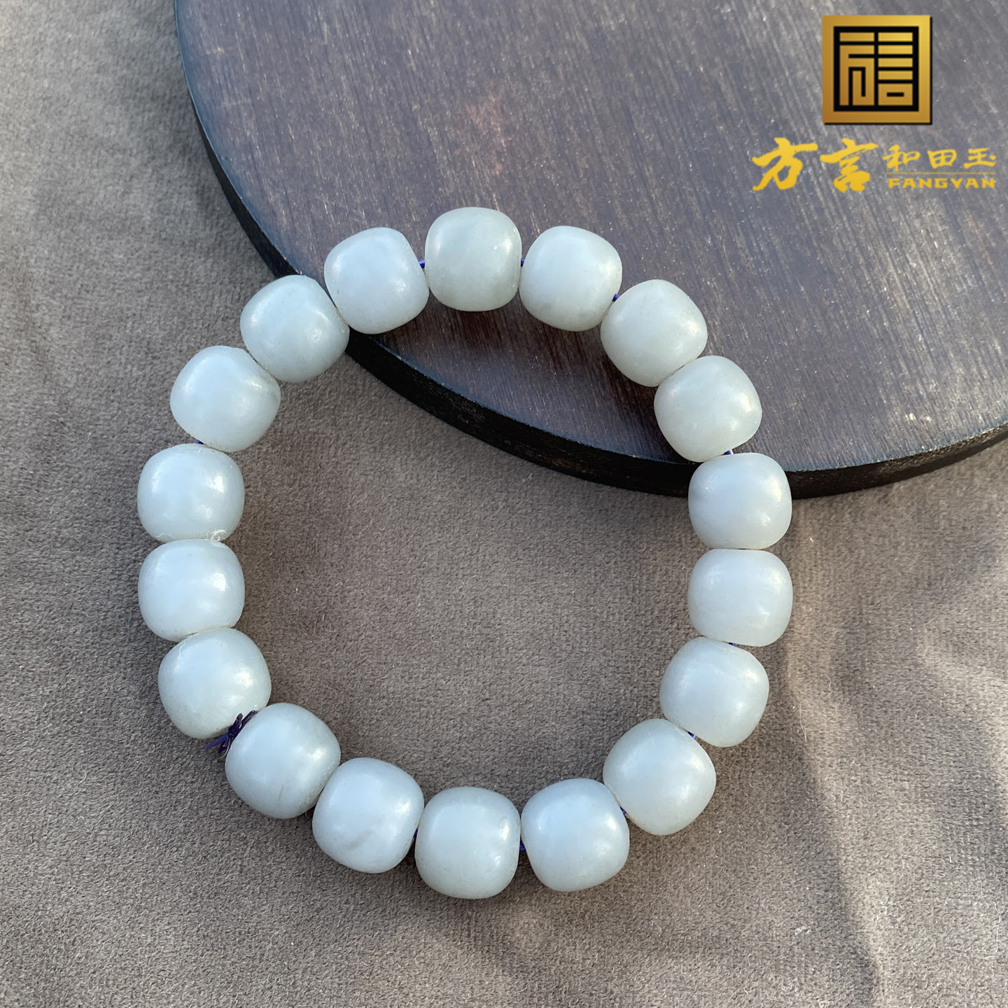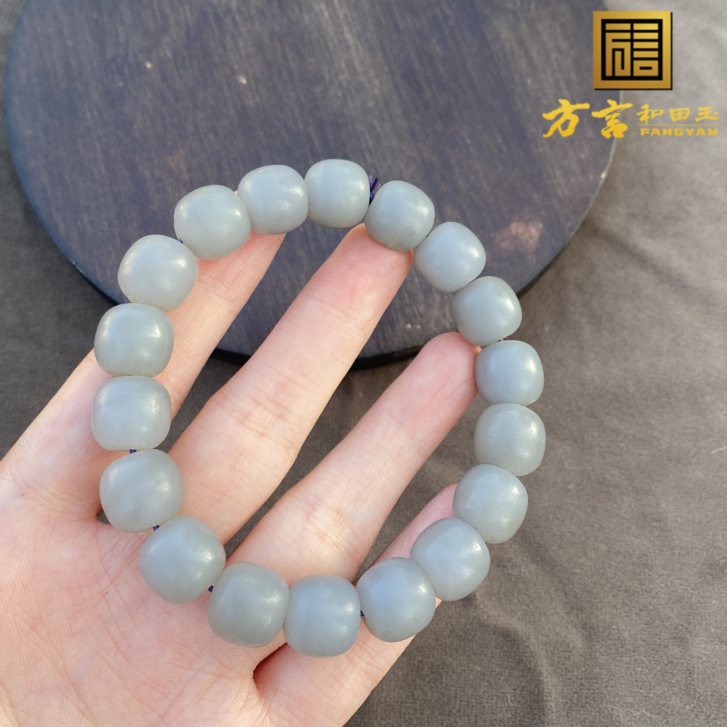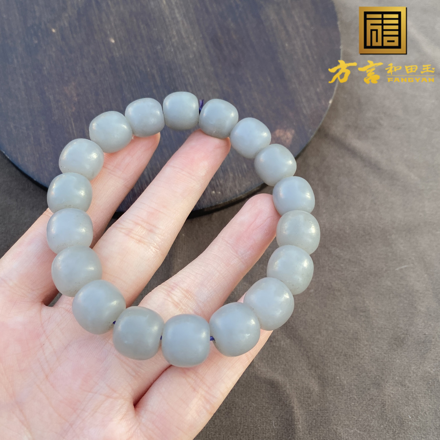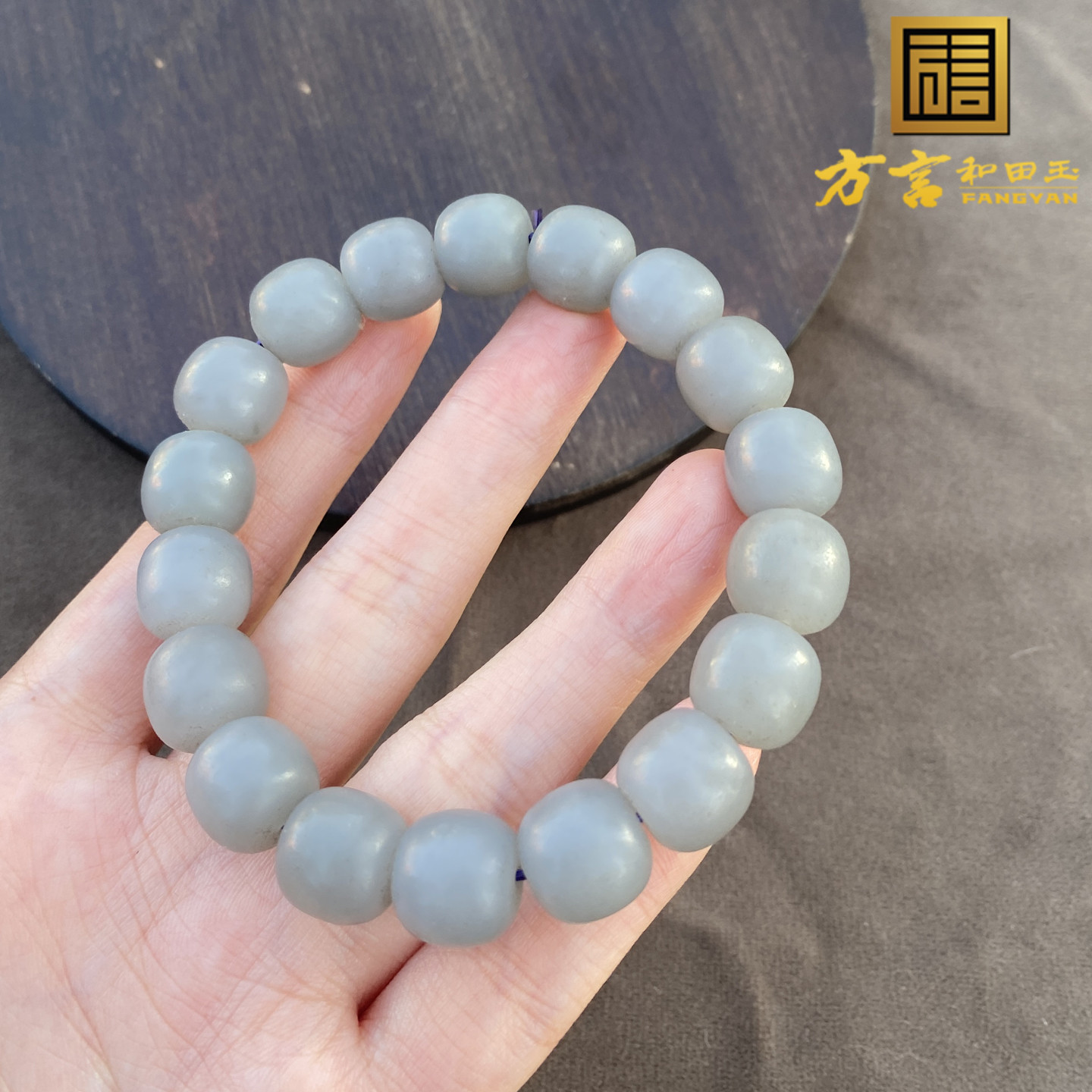 方言品牌和田玉精品青海老坑料肉底烟紫色卡12mm老型珠手链手串A2