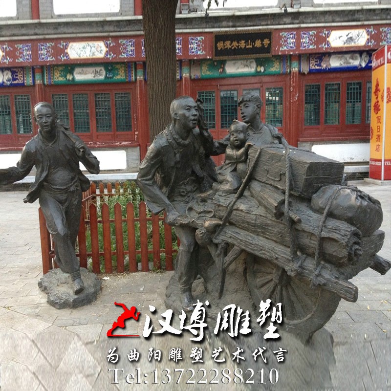 闯关东雕塑玻璃钢铸铜雕塑推独车走西口人物雕塑城市广场景观雕塑