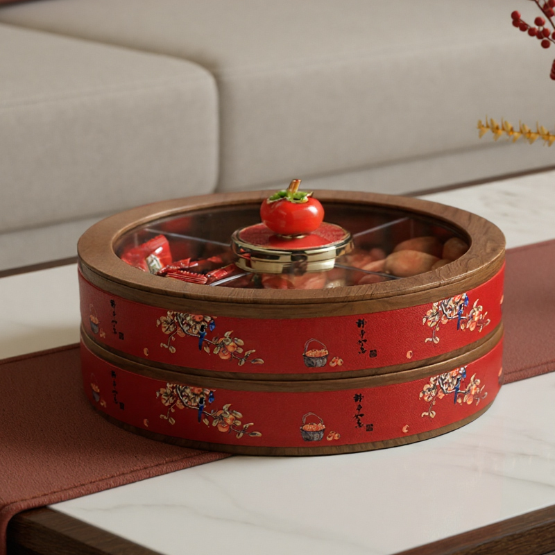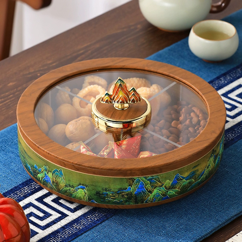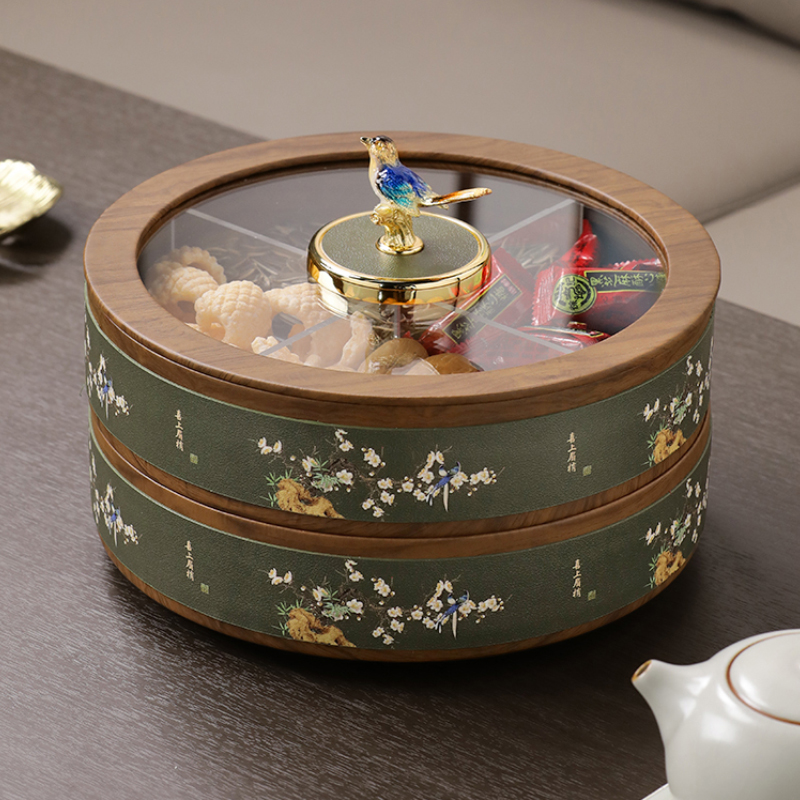 国潮风干果盒高档客厅茶几摆件水果零食带盖双层分格收纳盒装饰品