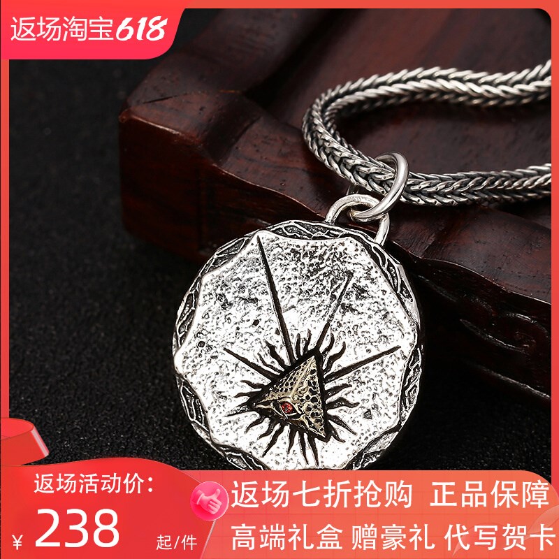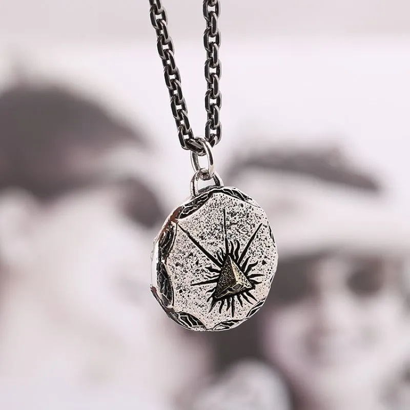 上帝之眼项链男士款纯银潮百搭复古高级感小众圆牌配饰吊坠送礼物