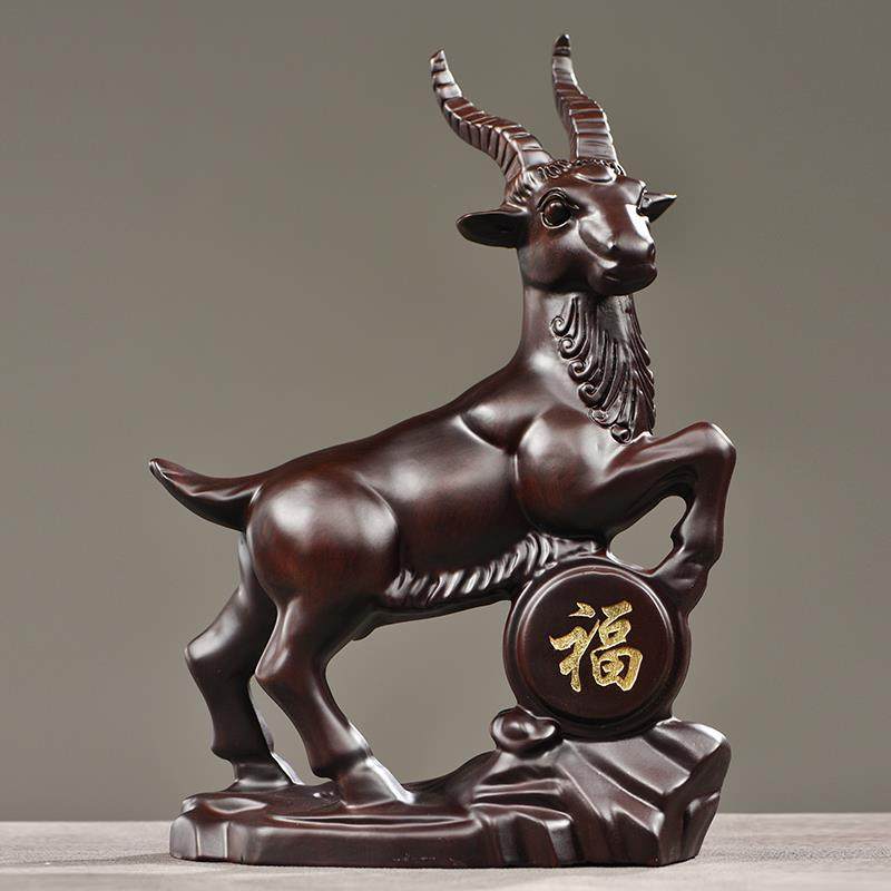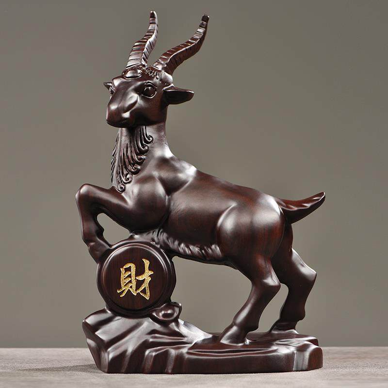 黑檀木雕十二生肖羊摆件实木领头山羊客厅装饰乔迁开业送礼工艺品