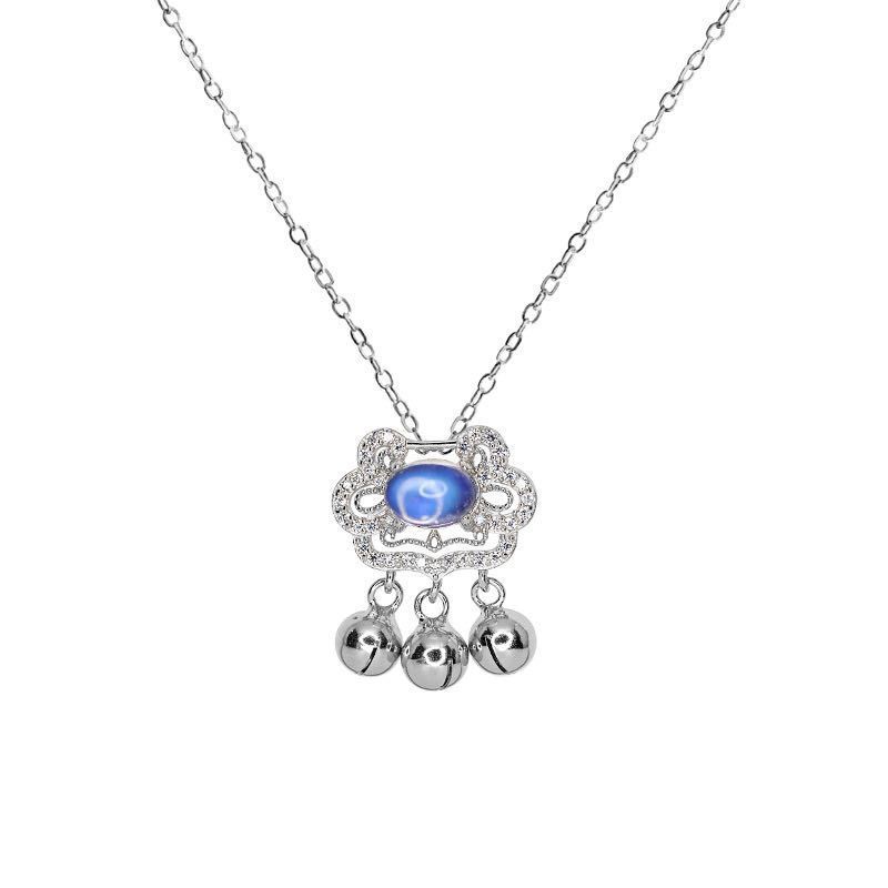 平安如意锁s925纯银项链女韩版简约气质月光石锁骨链2020年新款潮