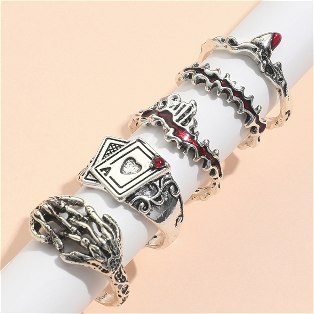 ins潮冷淡风个性食指戒 小众设计感液态扑克皮抓手合金戒指套装