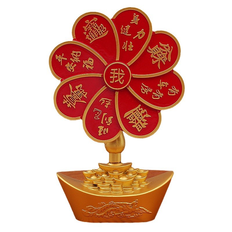 龙凤金元宝摇钱树风车转转八方来财平安纳福汽车载中控台旋转摆件