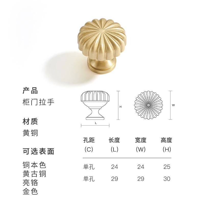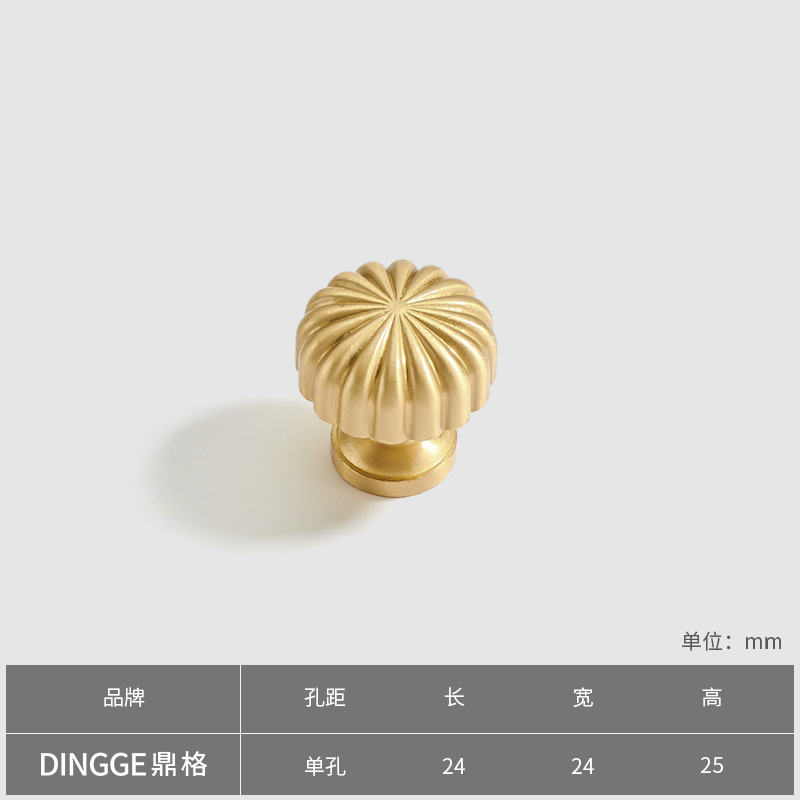 美式简约黄铜柜门拉手实心抽屉橱柜衣柜轻奢家具南瓜金色单孔把手