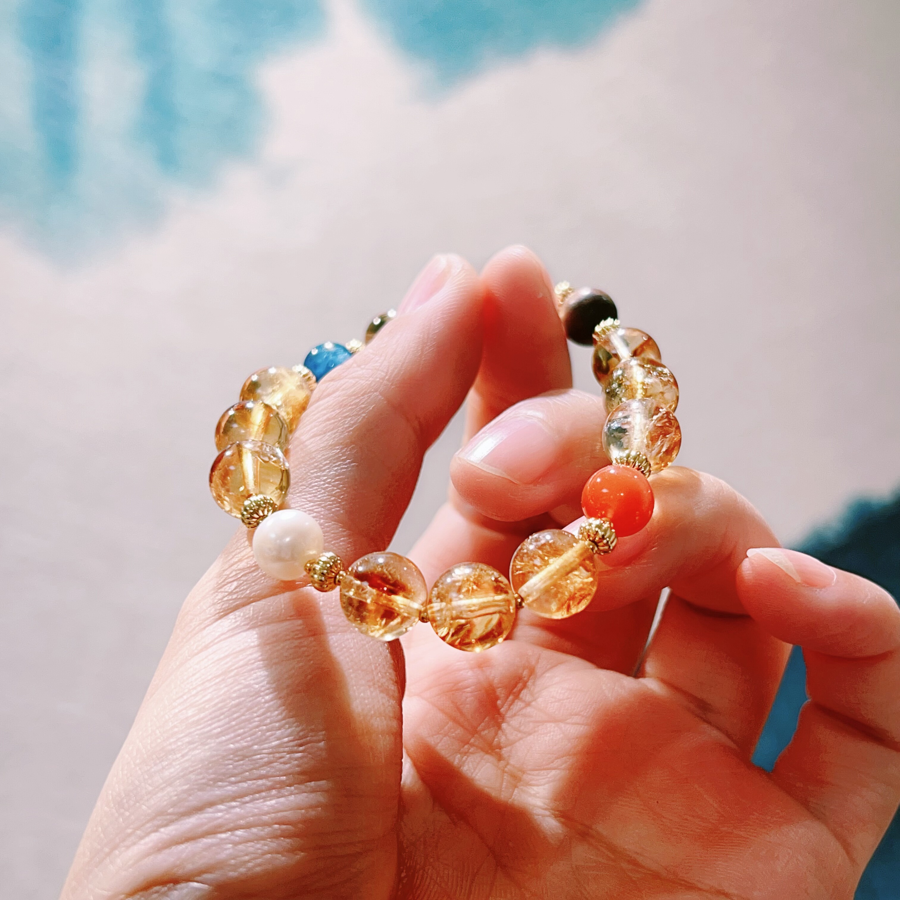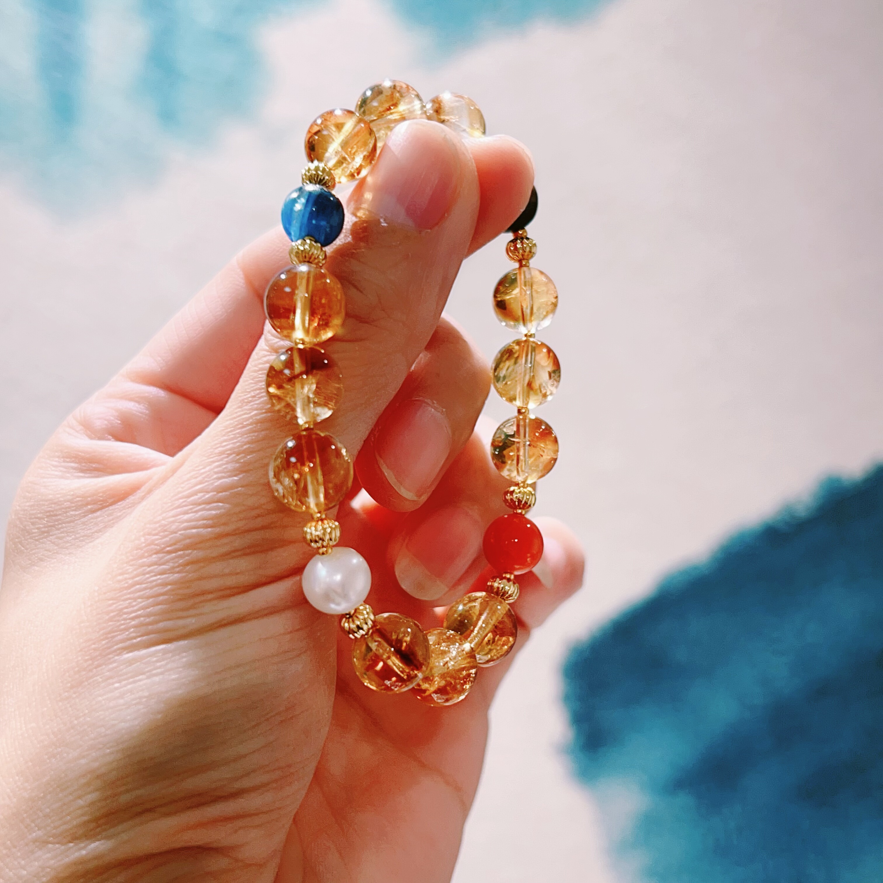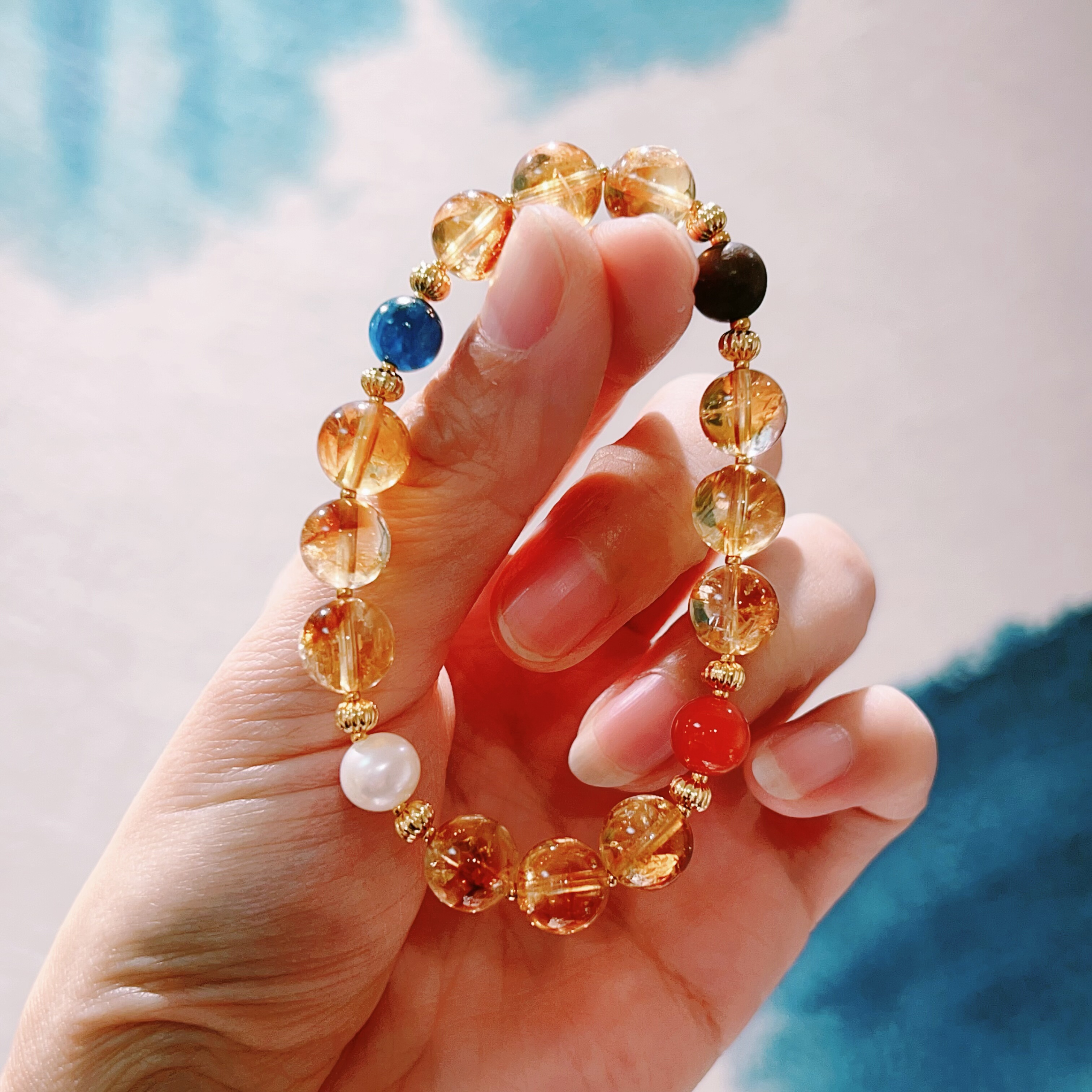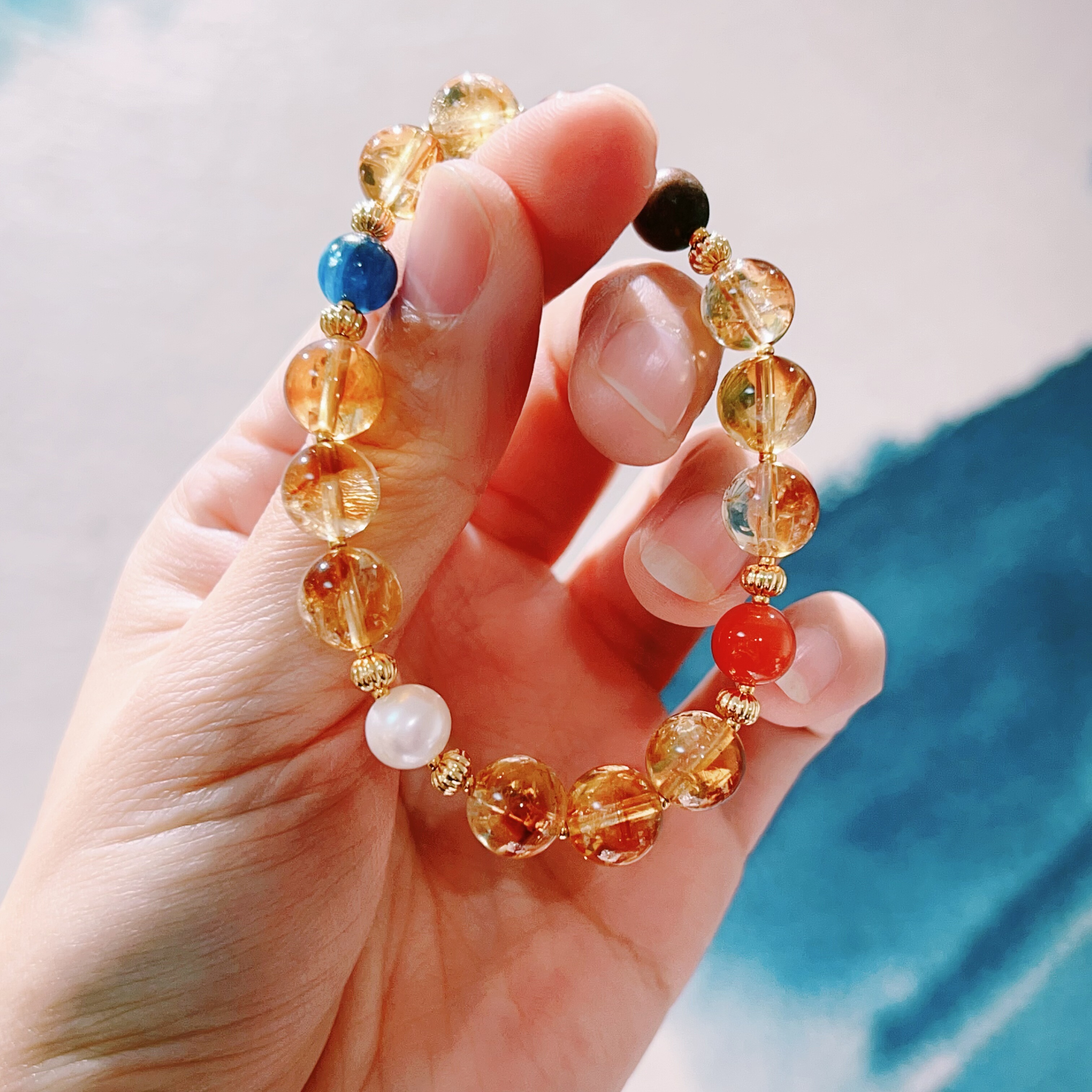 天然黄水晶手链女款14k镀金小众高级感手串原创设计招财暴富手饰