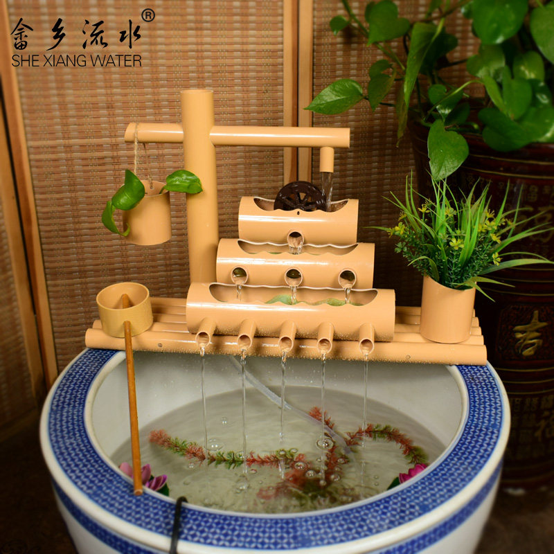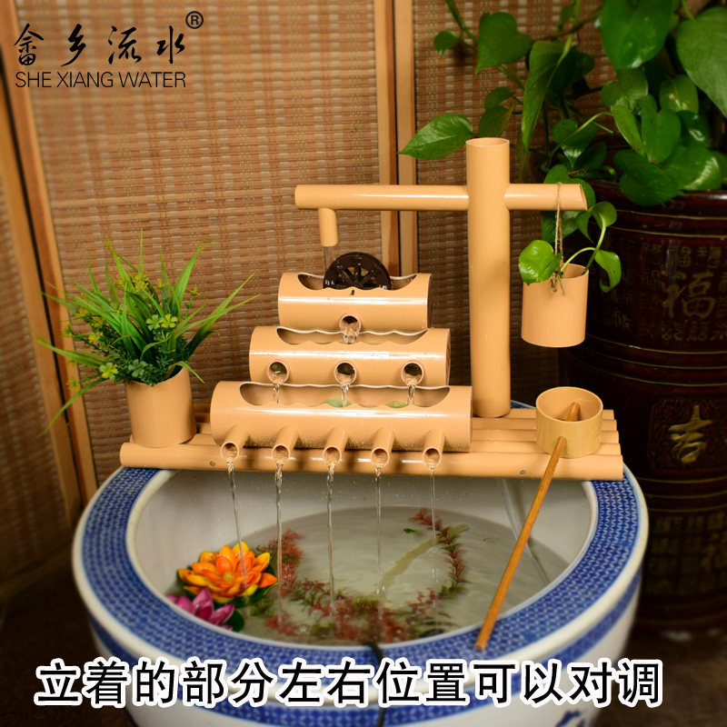 竹子流水摆件鱼缸石槽循环水取代氧气泵过滤器喷泉竹筒水车流水器