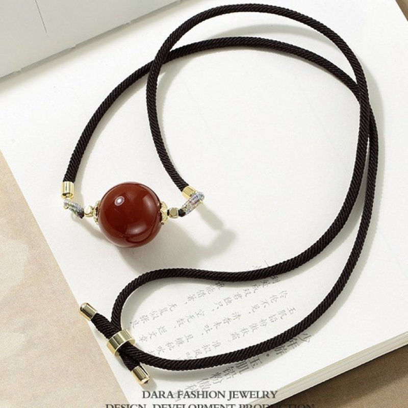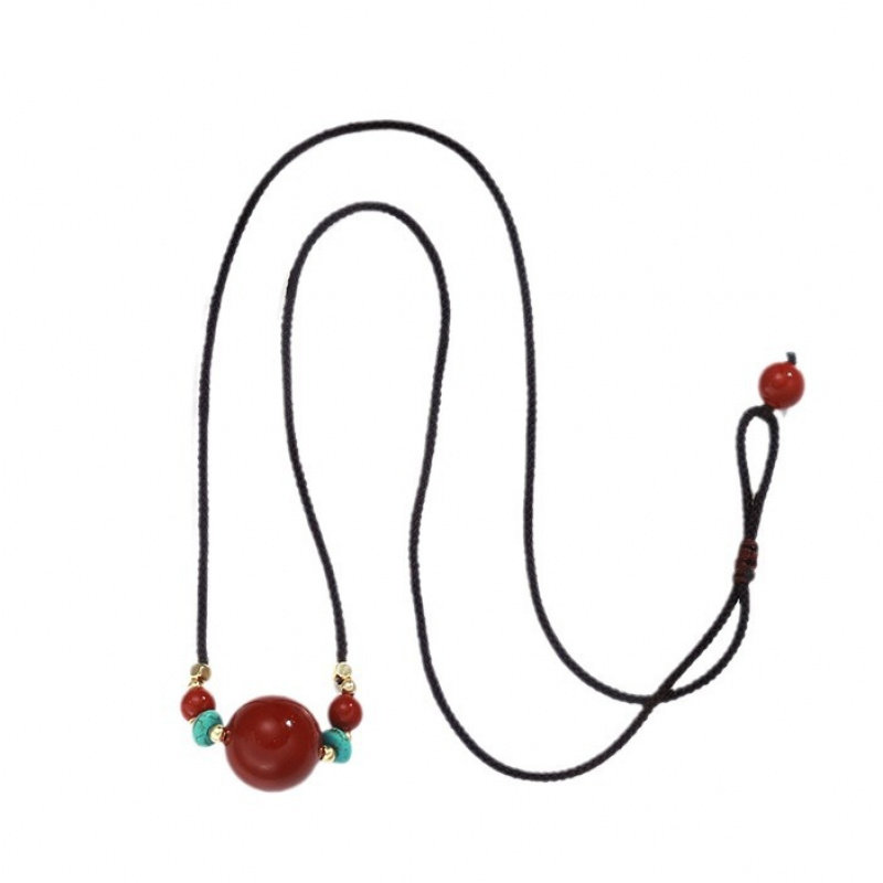朱砂绿松石南红玛瑙吊坠项链简约路路通红色珠子锁骨链高级感颈链