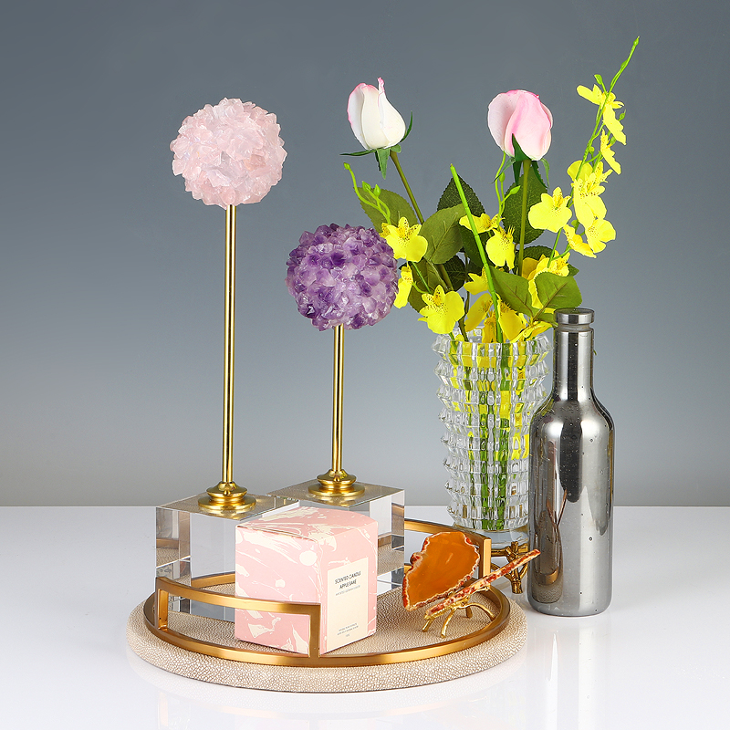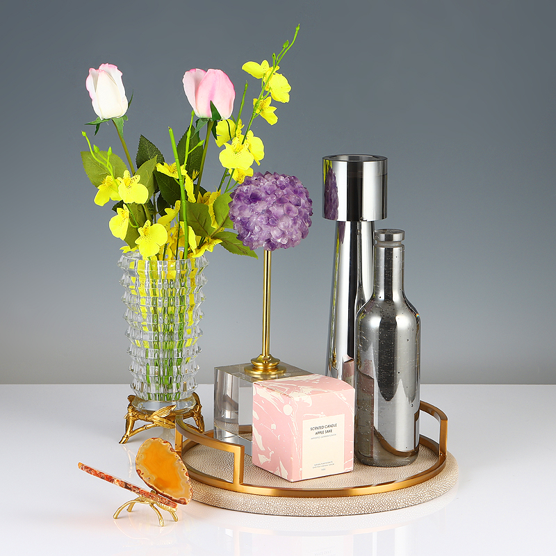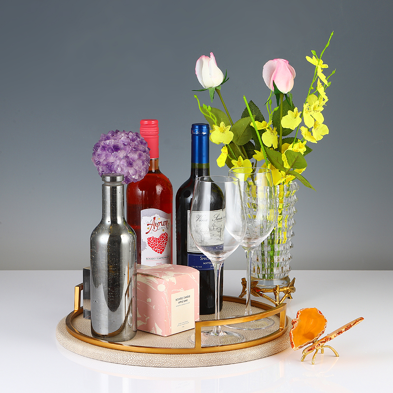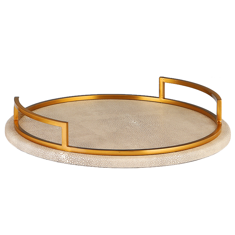 轻奢华皮质圆形金属软装饰托盘茶几圆桌创意现代简约新年家居摆设