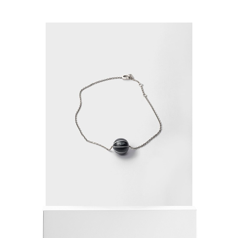 自营欧洲直邮Prada普拉达 男士锡色/黑色金属钩扣式开合项链