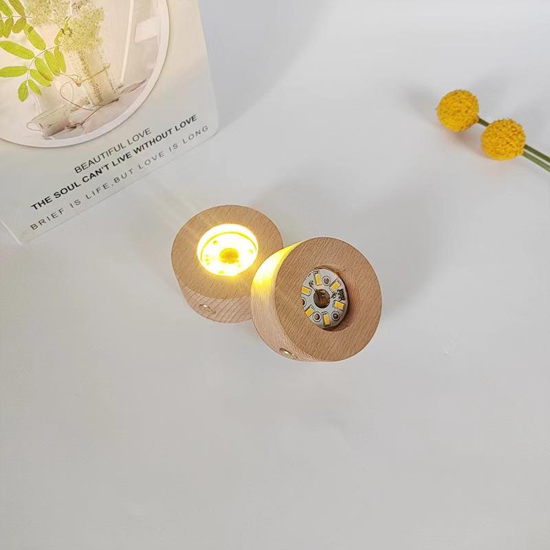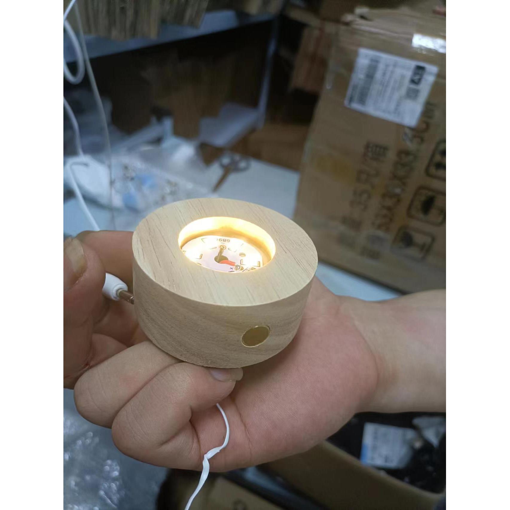 实木迷你加厚无线 线充电灯座暖光三色触摸无极调光LED发光水晶底