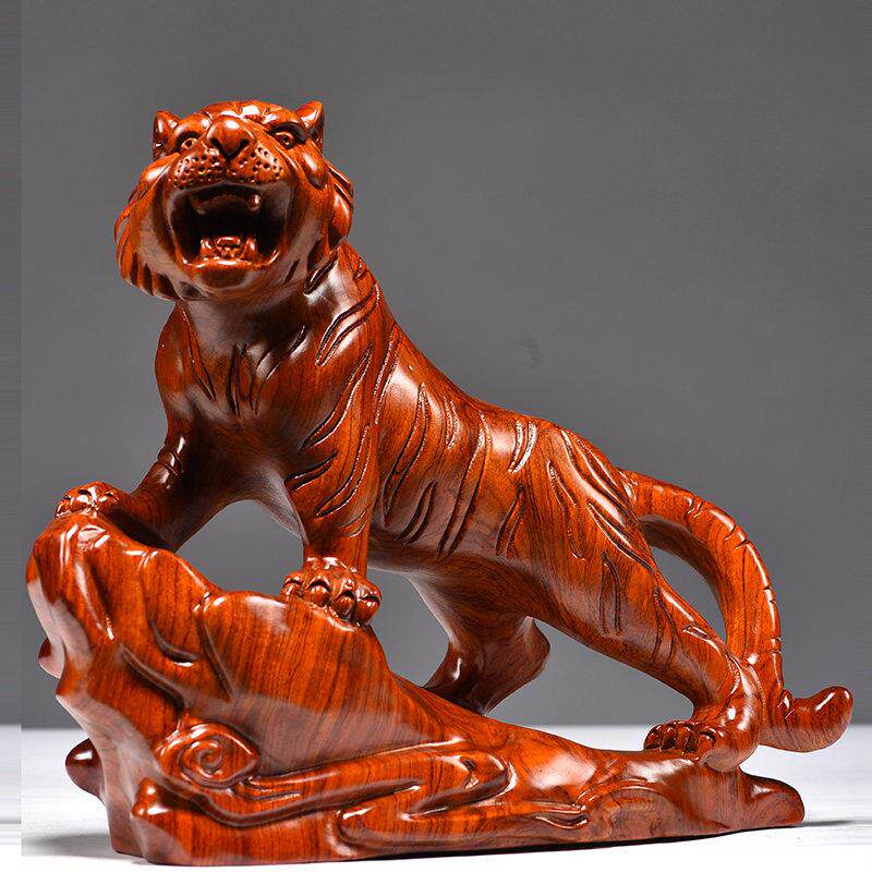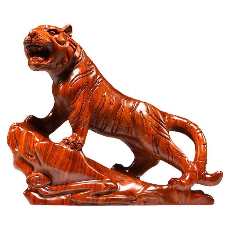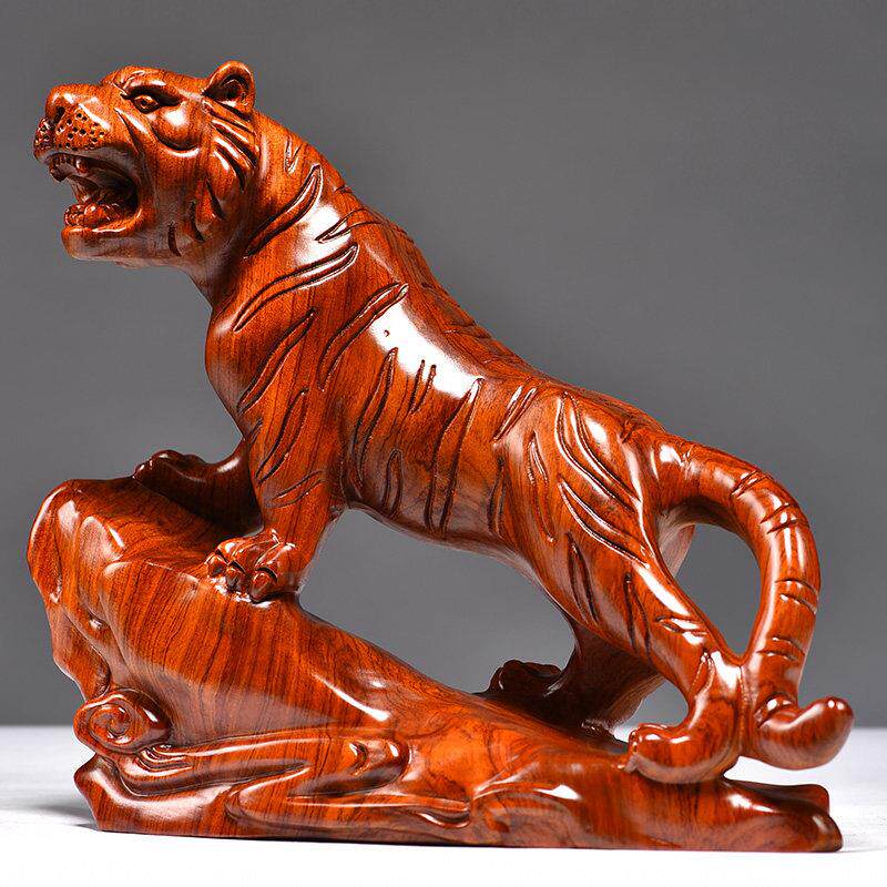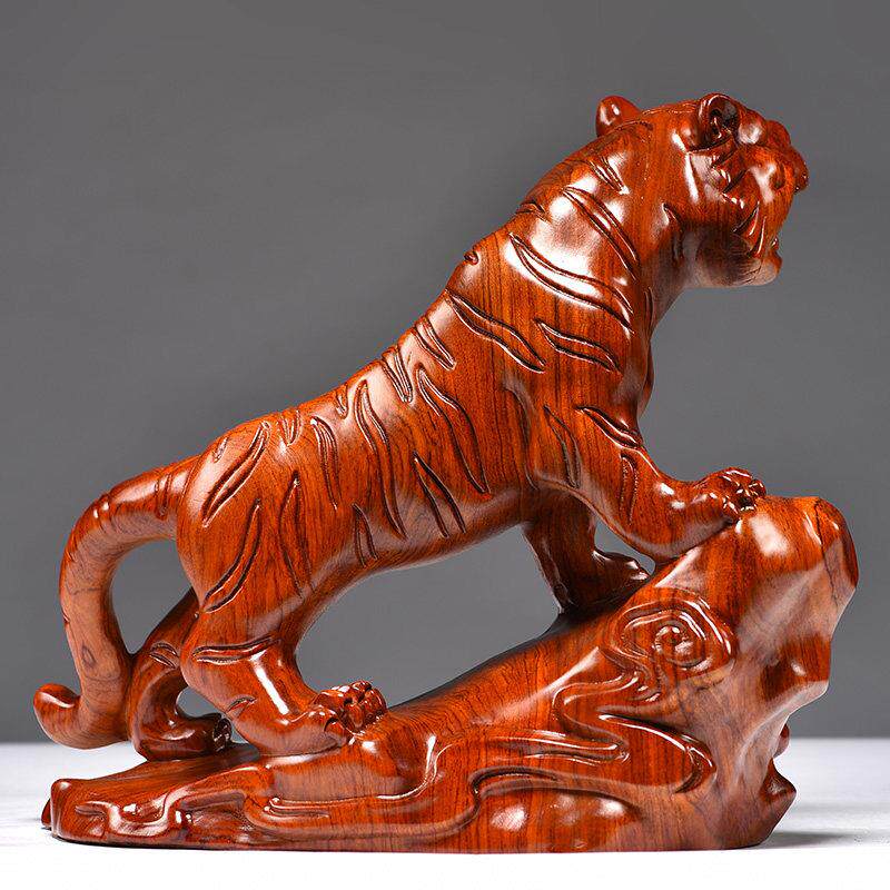 花梨木雕老虎摆件实木质上山虎生肖工艺礼品摆饰家居办公桌面装饰