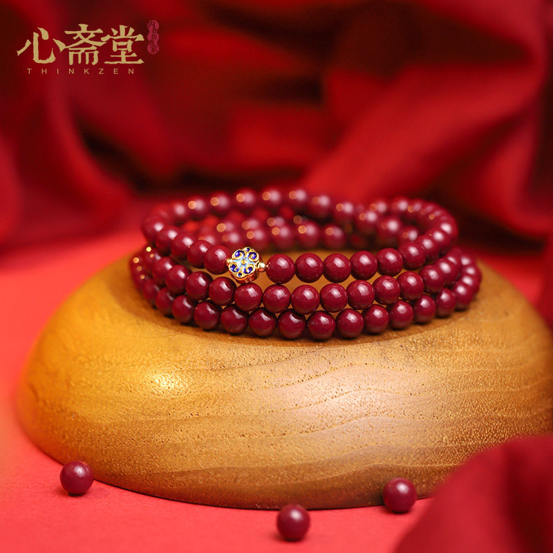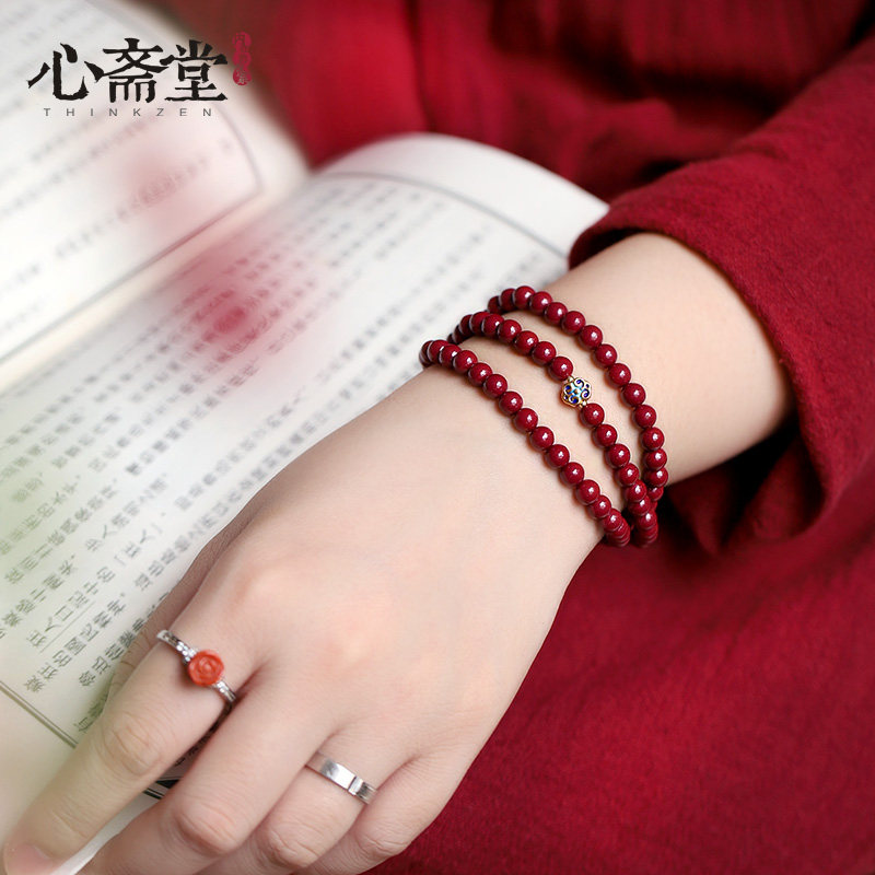 心斋堂【欢喜】天然高含量原矿朱砂手串马年本命年佛珠红砂手链女