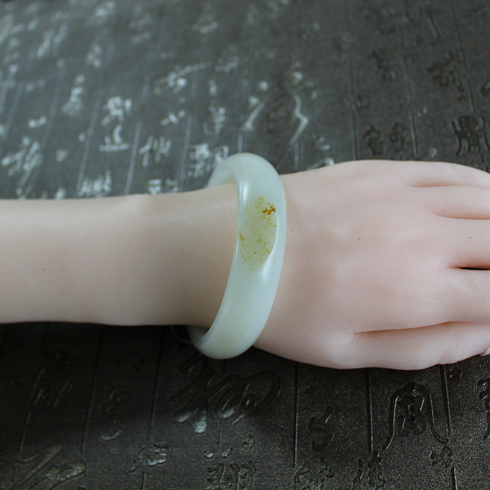 N58.2与羊脂只差白度的白玉籽料手镯 朕®跟16mm的羊脂手串同料
