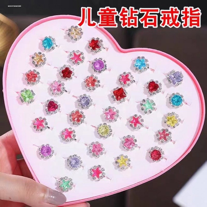 儿童戒指公主可爱小女孩钻石卡通首饰女童宝宝玩具女水钻指环