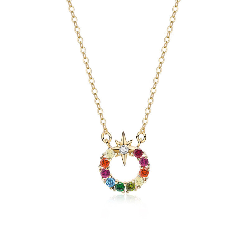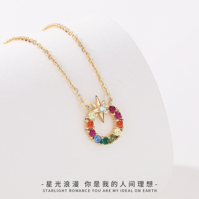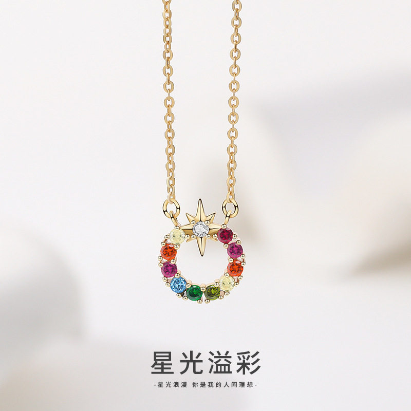 日韩s925纯银星光溢彩项链轻奢个性六芒星彩锆锁骨链女送女友礼物