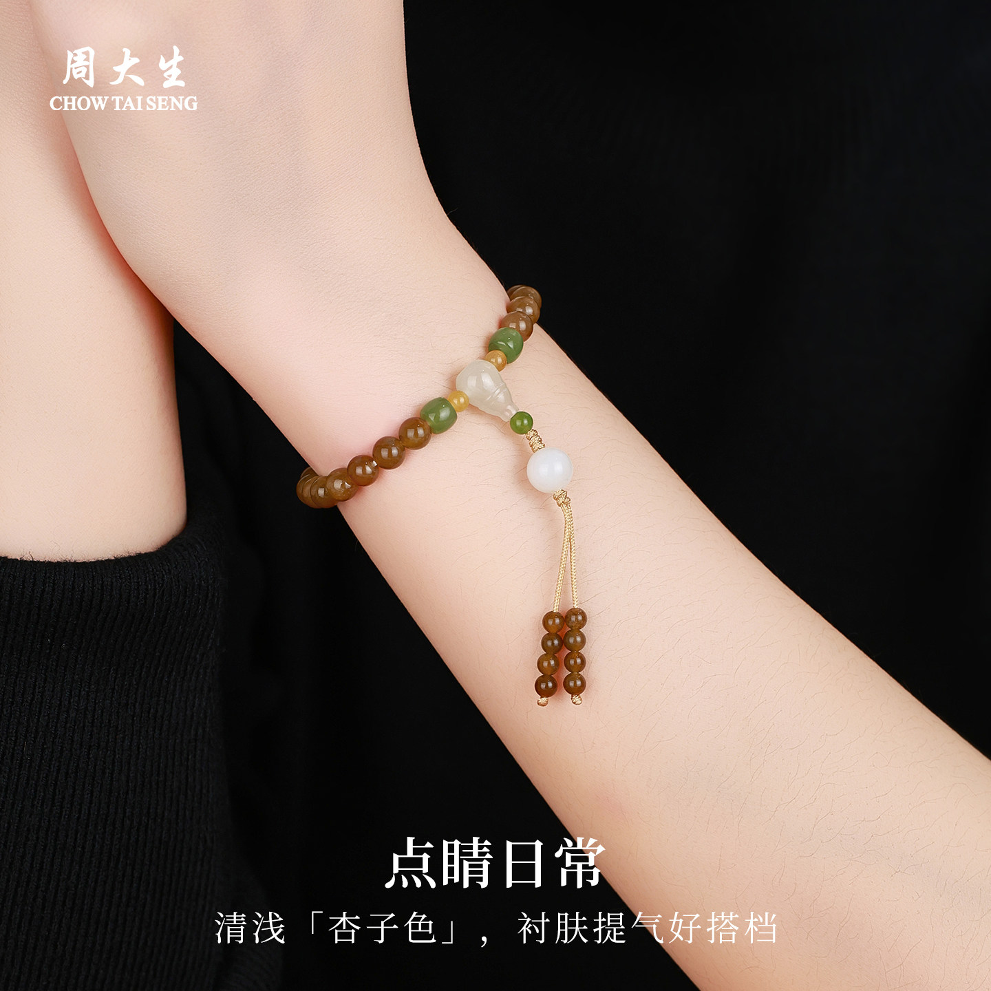 周大生官方天然糖玉和田玉手串正品玉石串珠手链生日礼物送女朋友