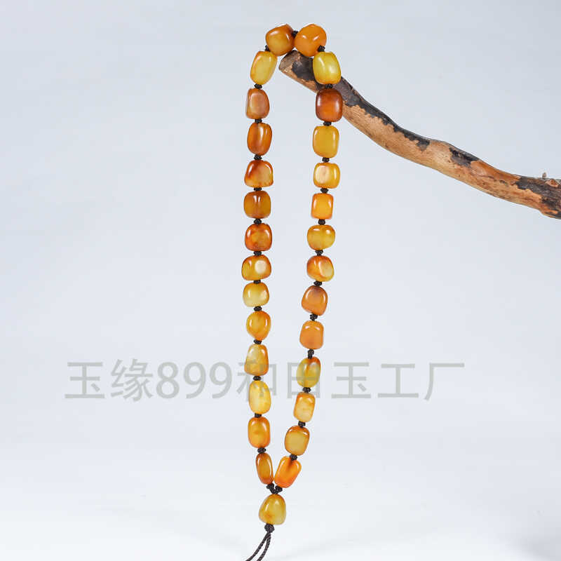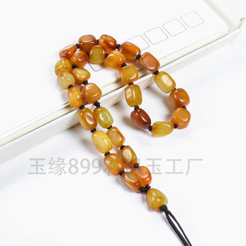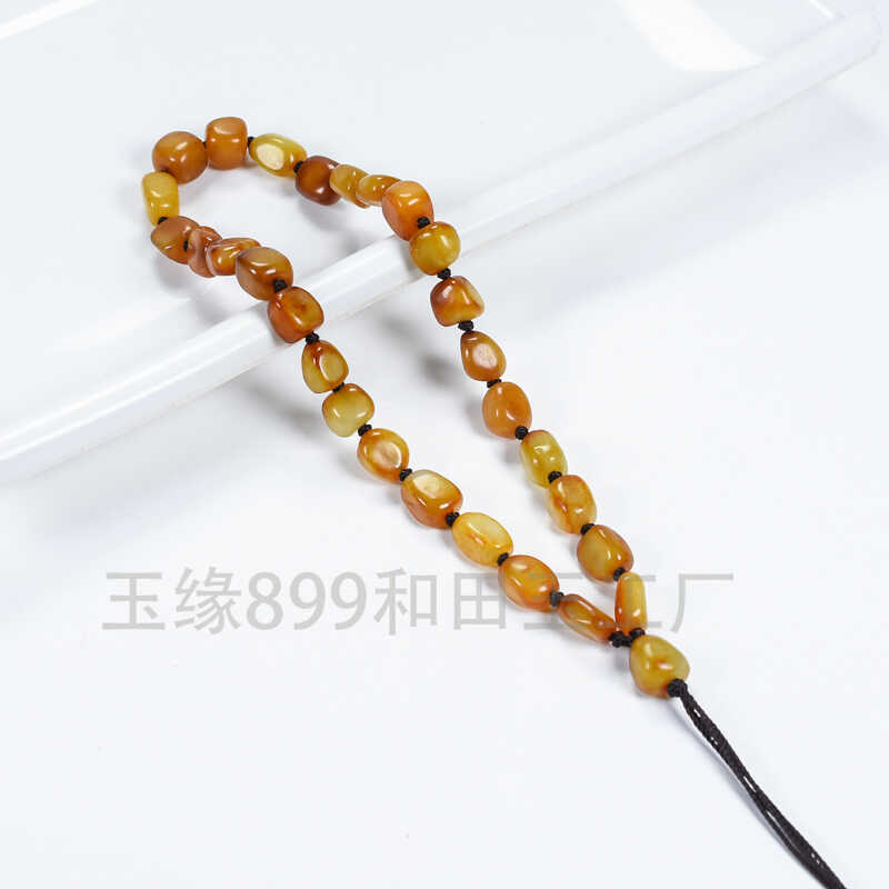 新疆和田玉把件挂绳原石手把件链子红沁随行珠子手工编挂件链保真
