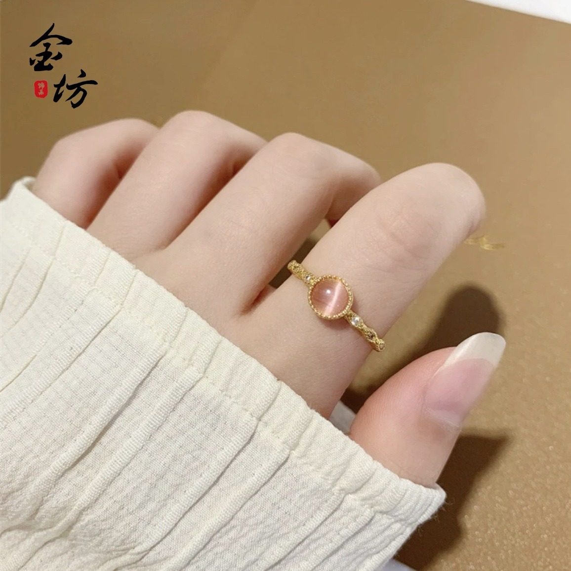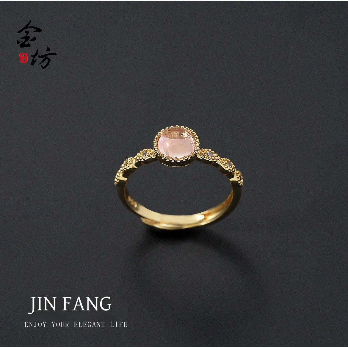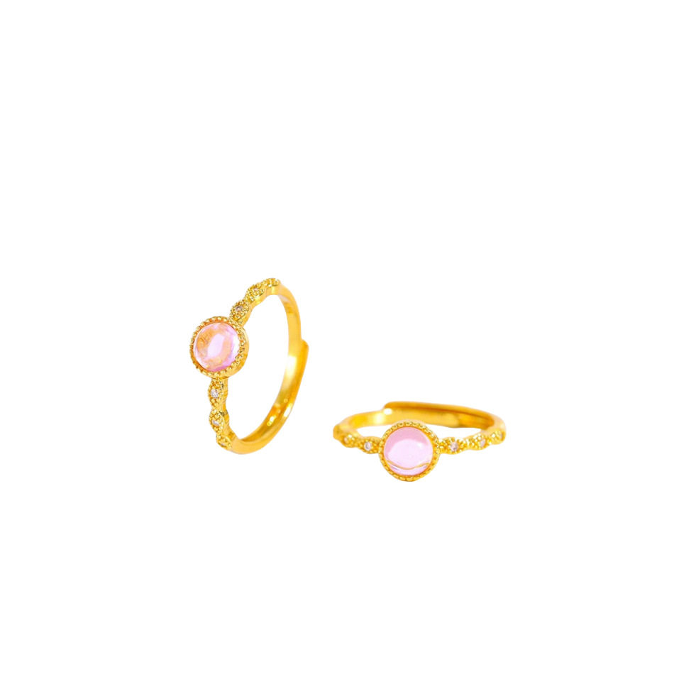 越南沙金亮金仲夏夜之梦香芋粉色古法镶钻戒指开口可调节轻奢女