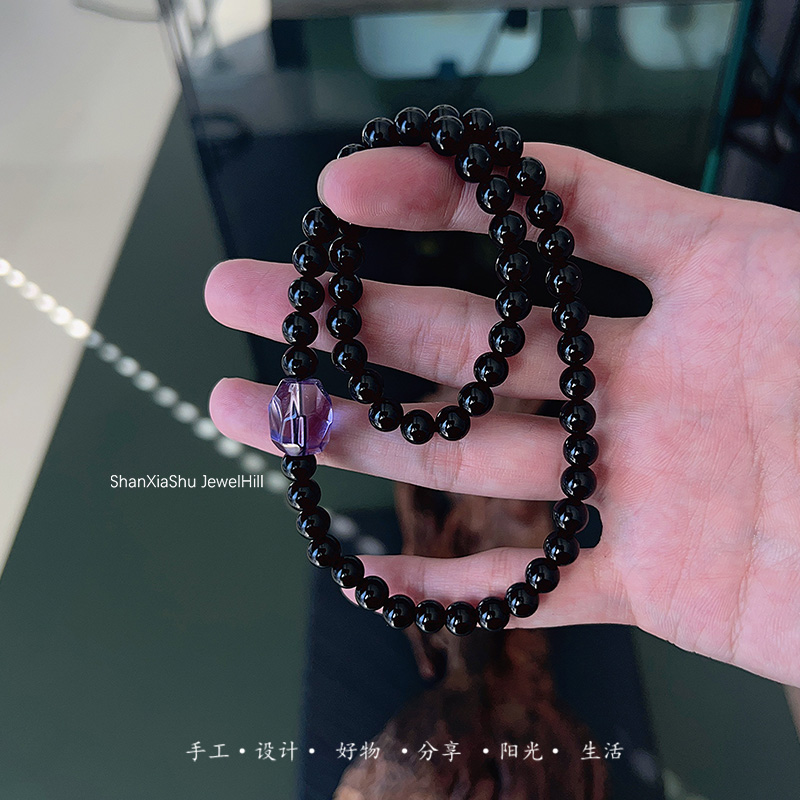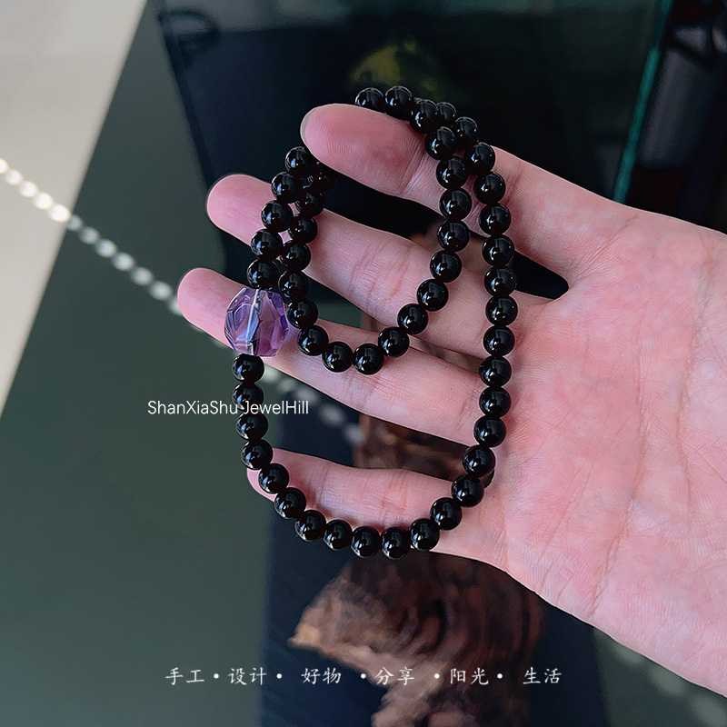 山下树 大展宏图 天然黑曜石随心紫水晶好寓意上岸双圈手串男礼物