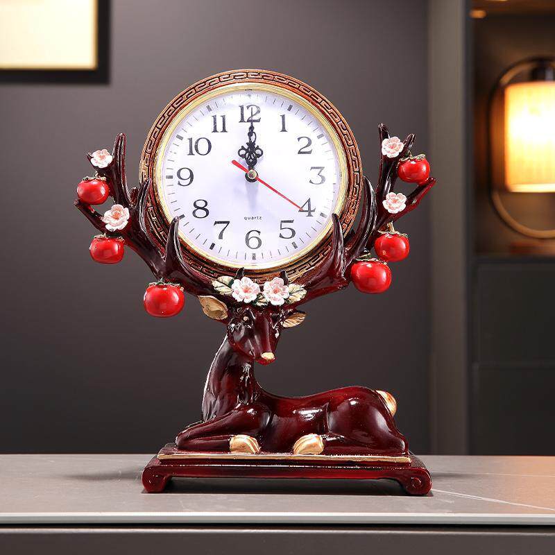 尚座钟客厅家用台式钟表欧式时钟摆中式麋鹿复美式时高TEI端件大