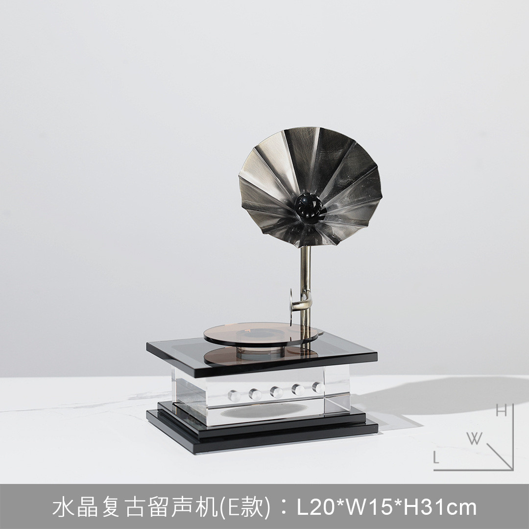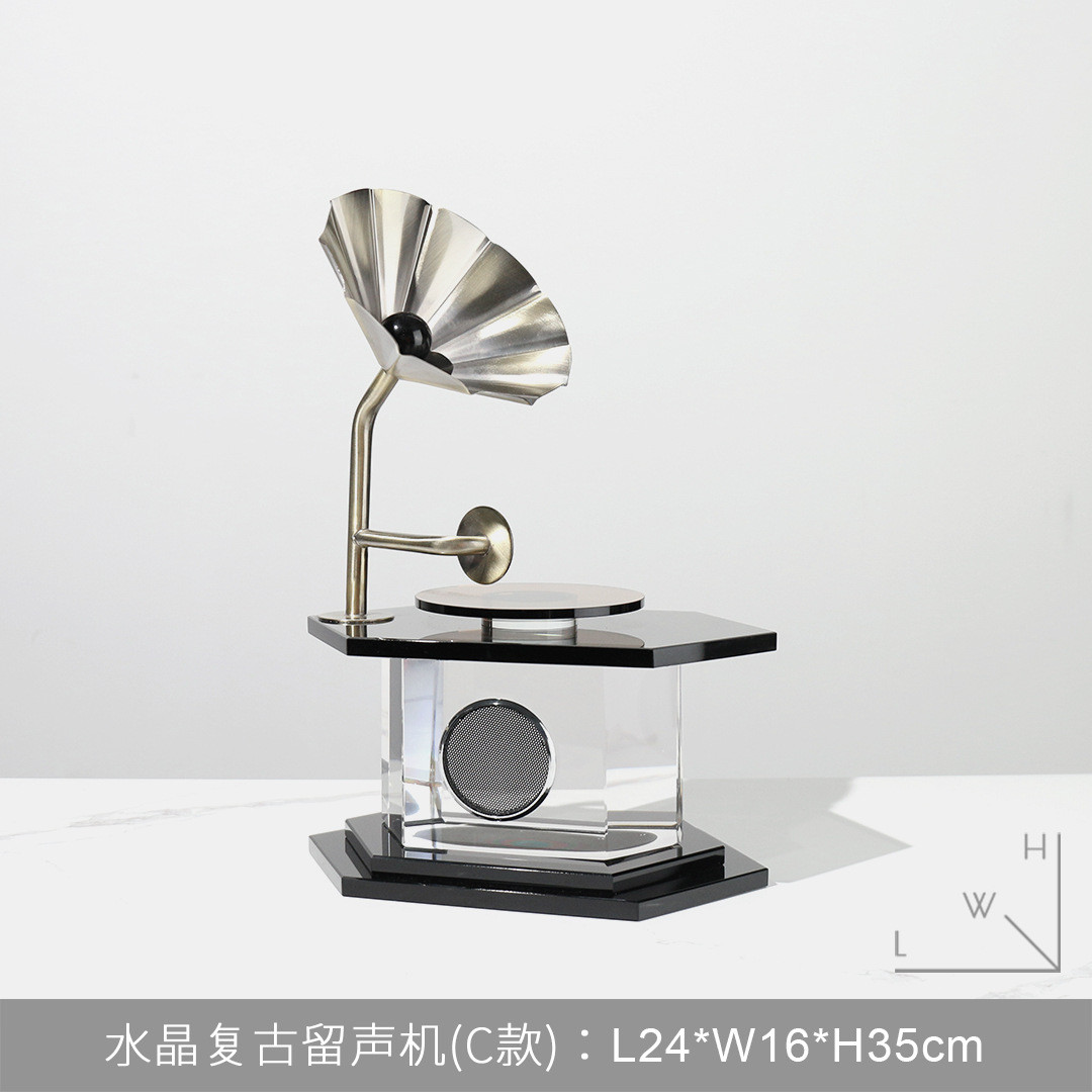 新中式办公室复古留声机摆件书房柜电视柜客厅简约售楼处软装饰品