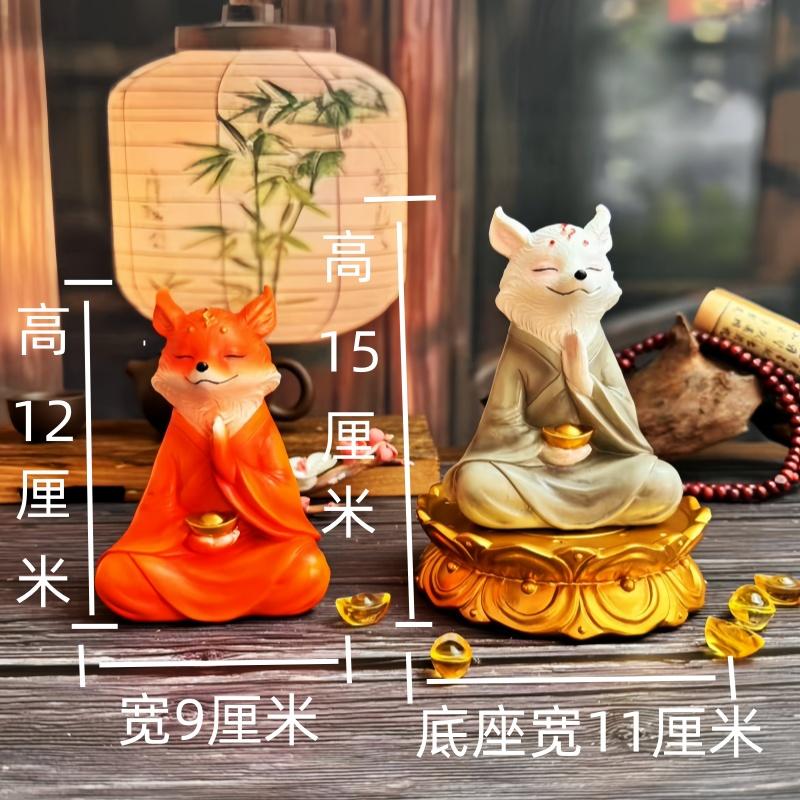 白色九尾狐狸小摆件多肉植物花盆造景治愈系解压情绪汽车载装饰品