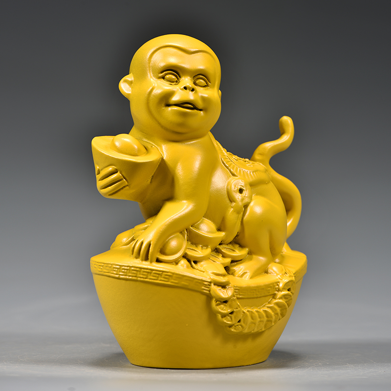 黄色木猴子雕刻摆件十二生肖猴木头属猴吉祥物家居补角装饰工艺品