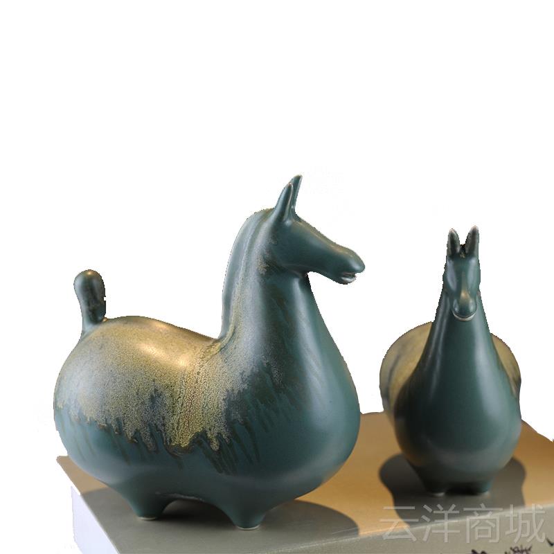 正品景镇房陶瓷唐马摆件客博厅电视酒柜古架家居装饰品德新中式书