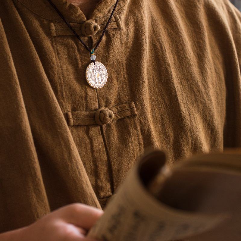 足银999描金山鬼花钱吊坠太极八卦圆牌男女纯银吊牌国风项链礼物