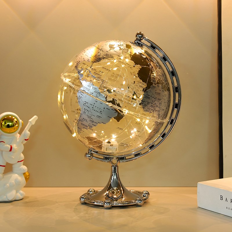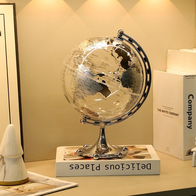 透明地球仪摆件发光高级感家居客厅电视柜酒柜办公室装饰品礼物