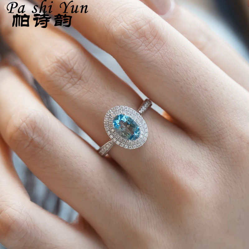 帕诗韵轻奢款浪漫宫廷风S925纯银奢华镶嵌满钻水蓝色椭圆甜美戒指