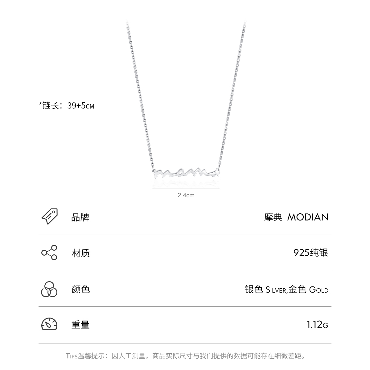 MODIAN摩典925纯银字母项链女欧美ins流行叠戴MAMA小巧甜美锁骨链