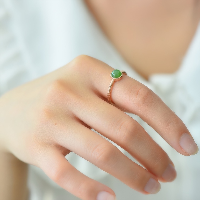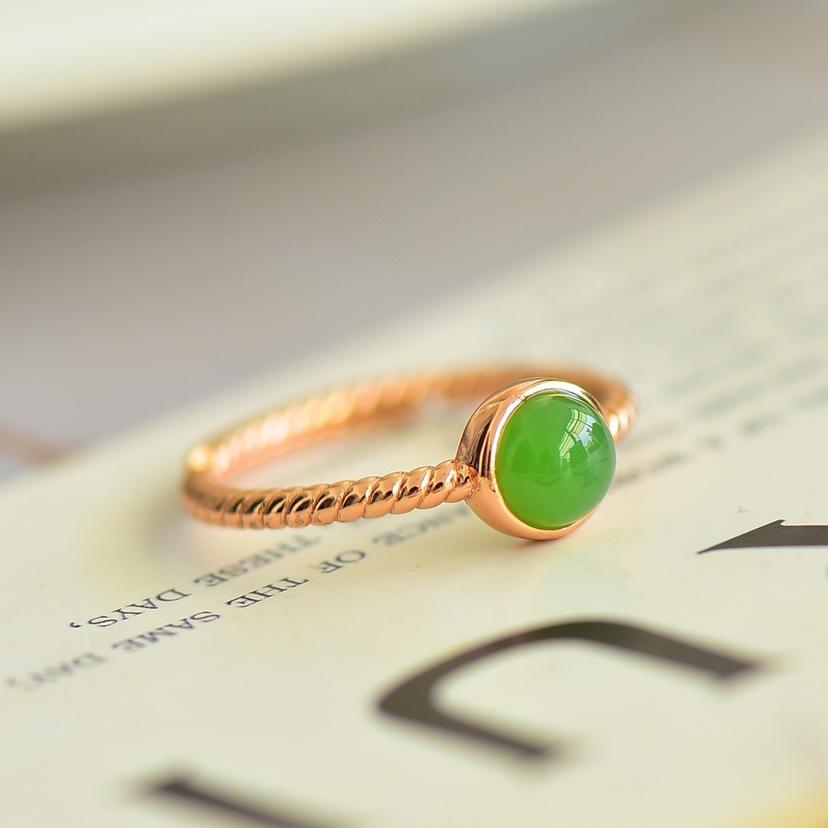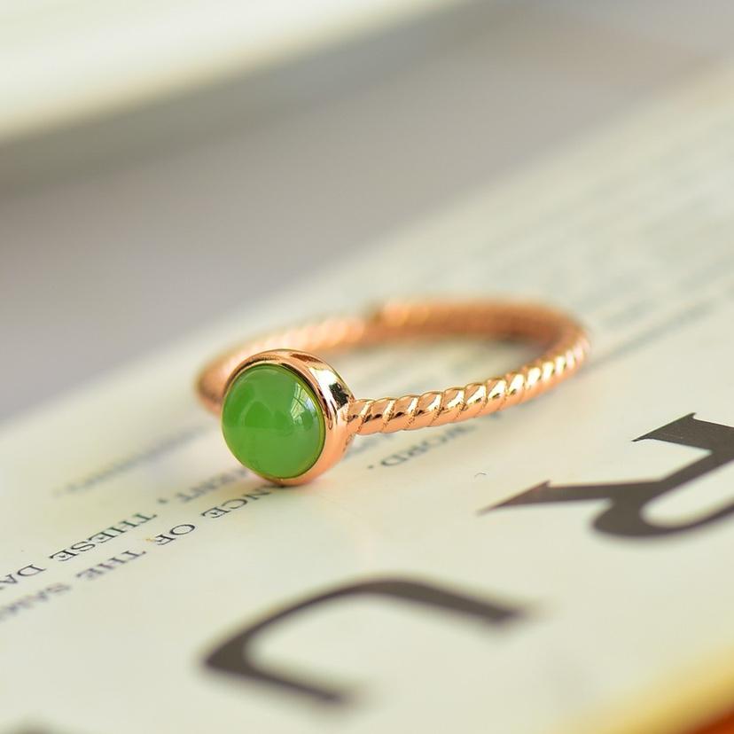 和田玉碧玉蛋面戒指镶纯银鎏金麻花指环开口戒圈女尾戒个性高级感