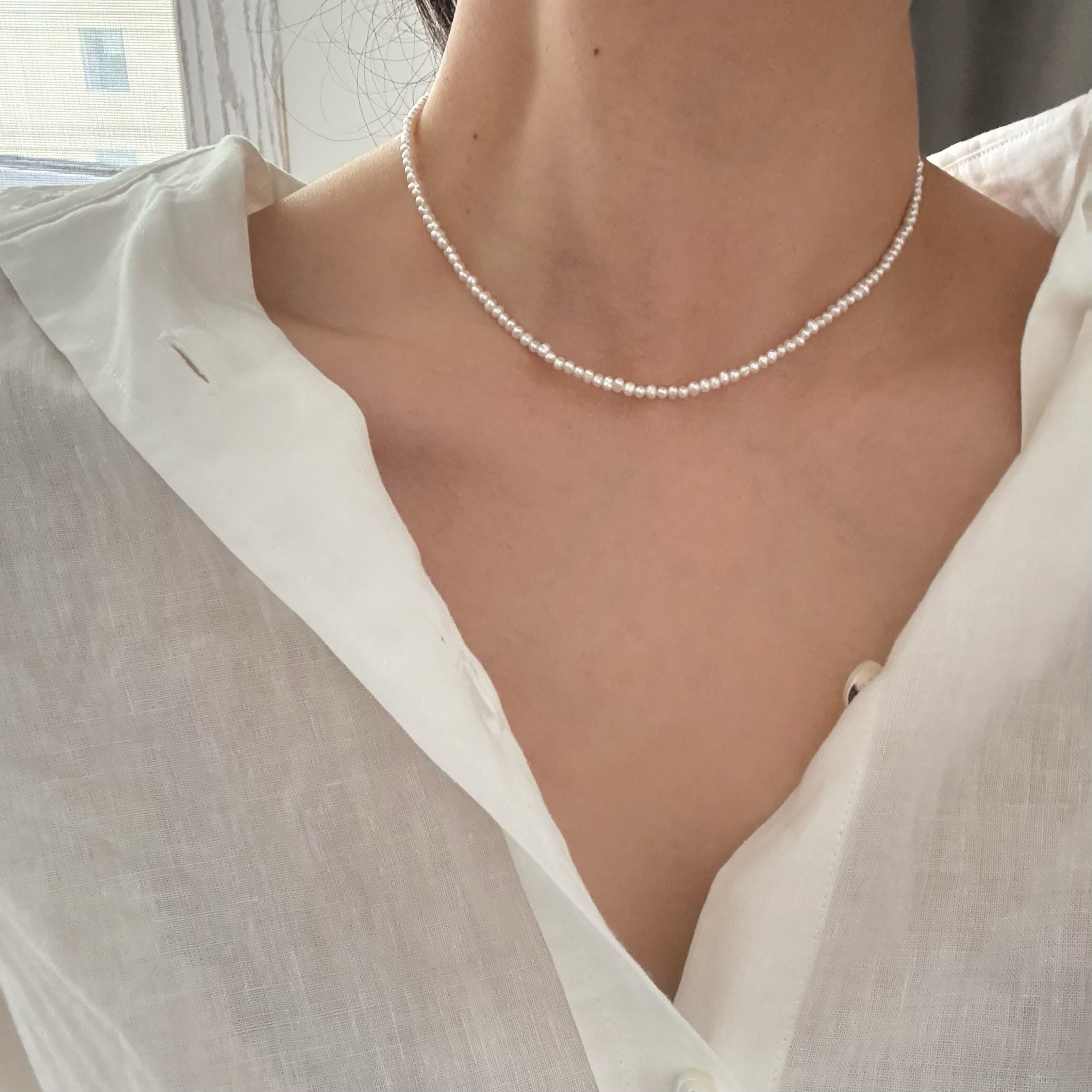 天然淡水珍珠项链s925纯银细锁骨链气质百搭通勤叠戴小众设计感女