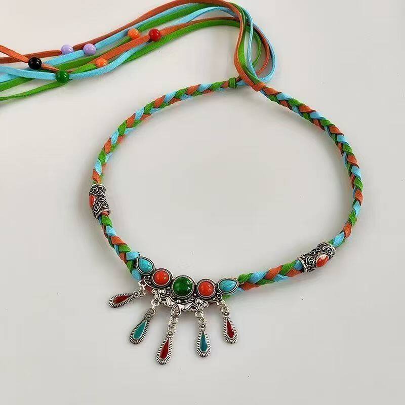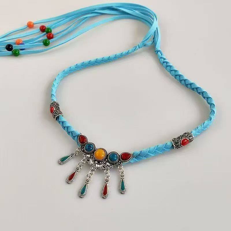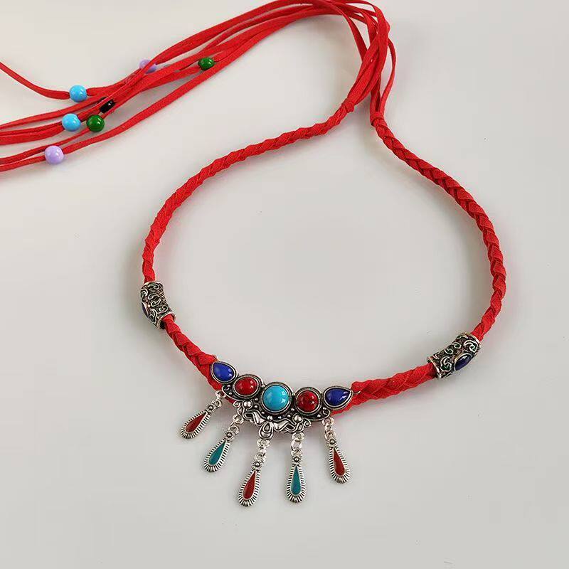 蒙古族头饰蒙古族串珠珠手工演出舞蹈服配饰长款流苏编织发带头绳