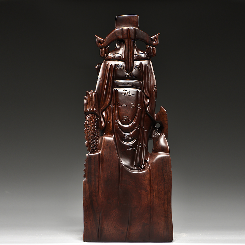 黑檀木雕财神爷像摆件红木腾龙聚宝盆财神爷家居客厅店铺开业送礼