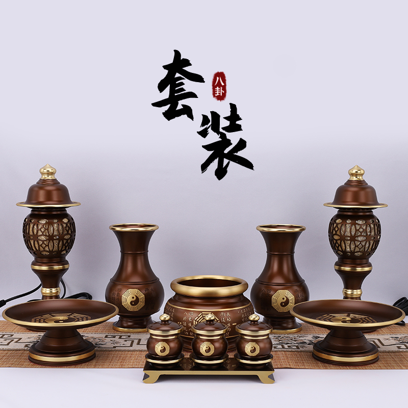 极速铜道家供h具太极八卦香炉全套神台道观供奉用品供果盘长明灯