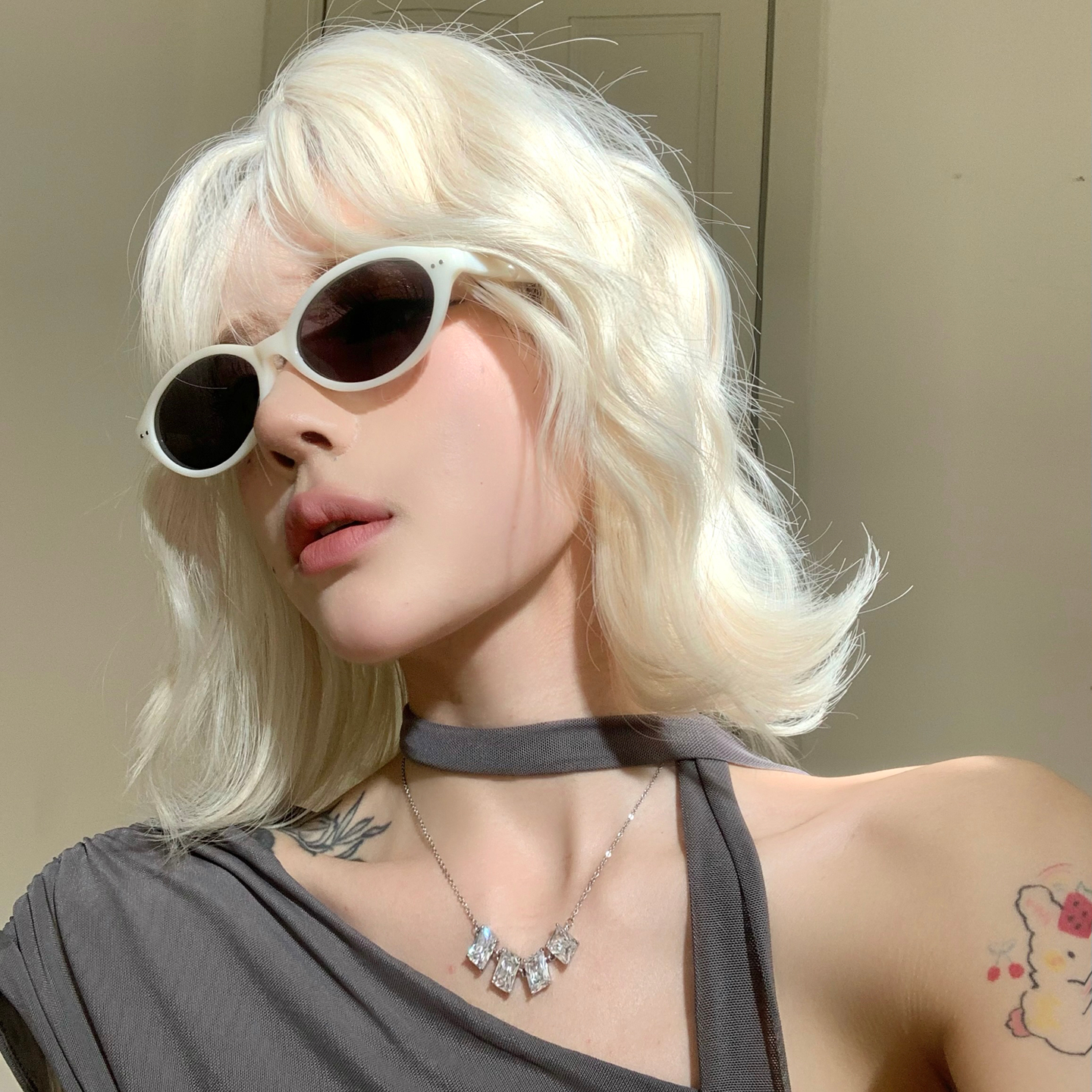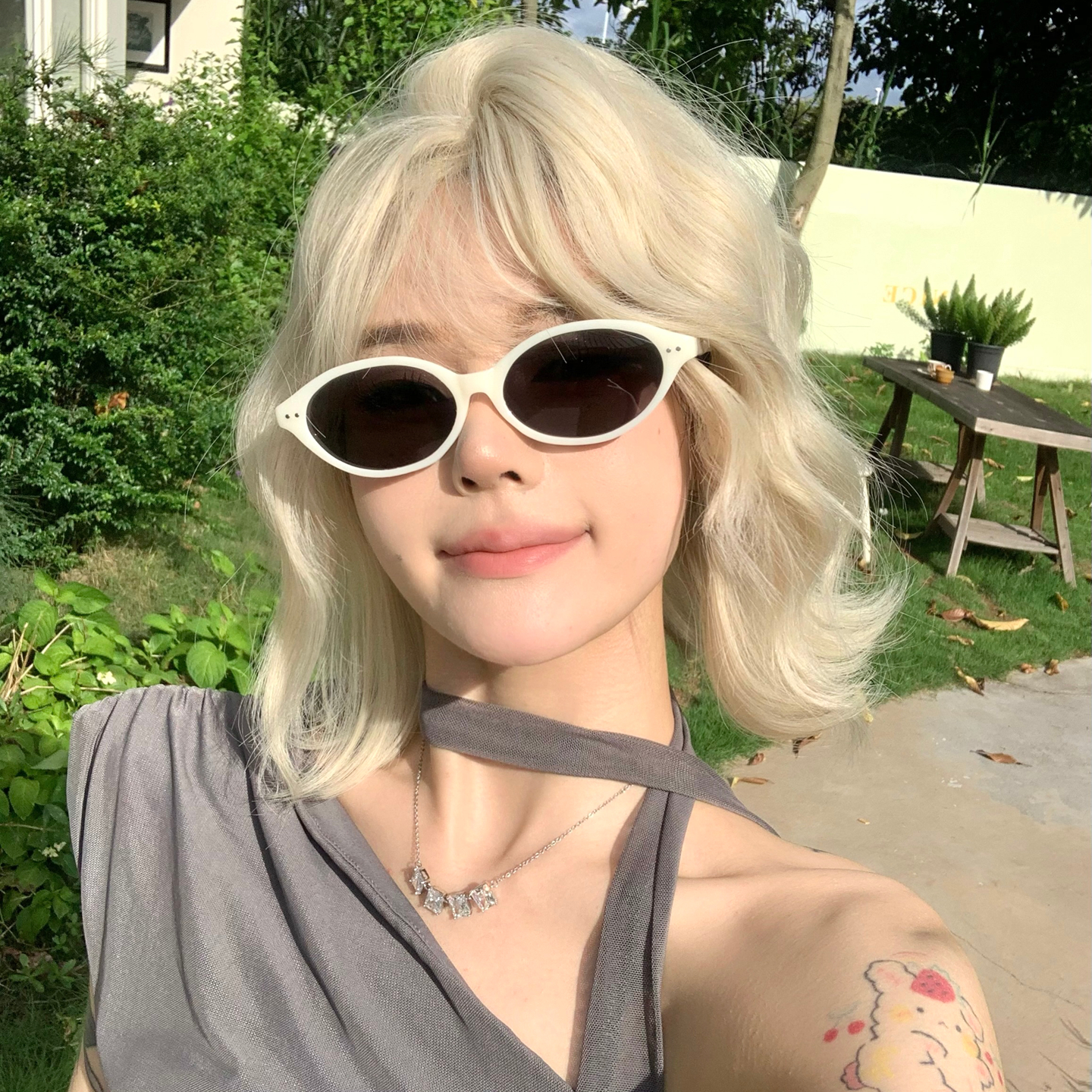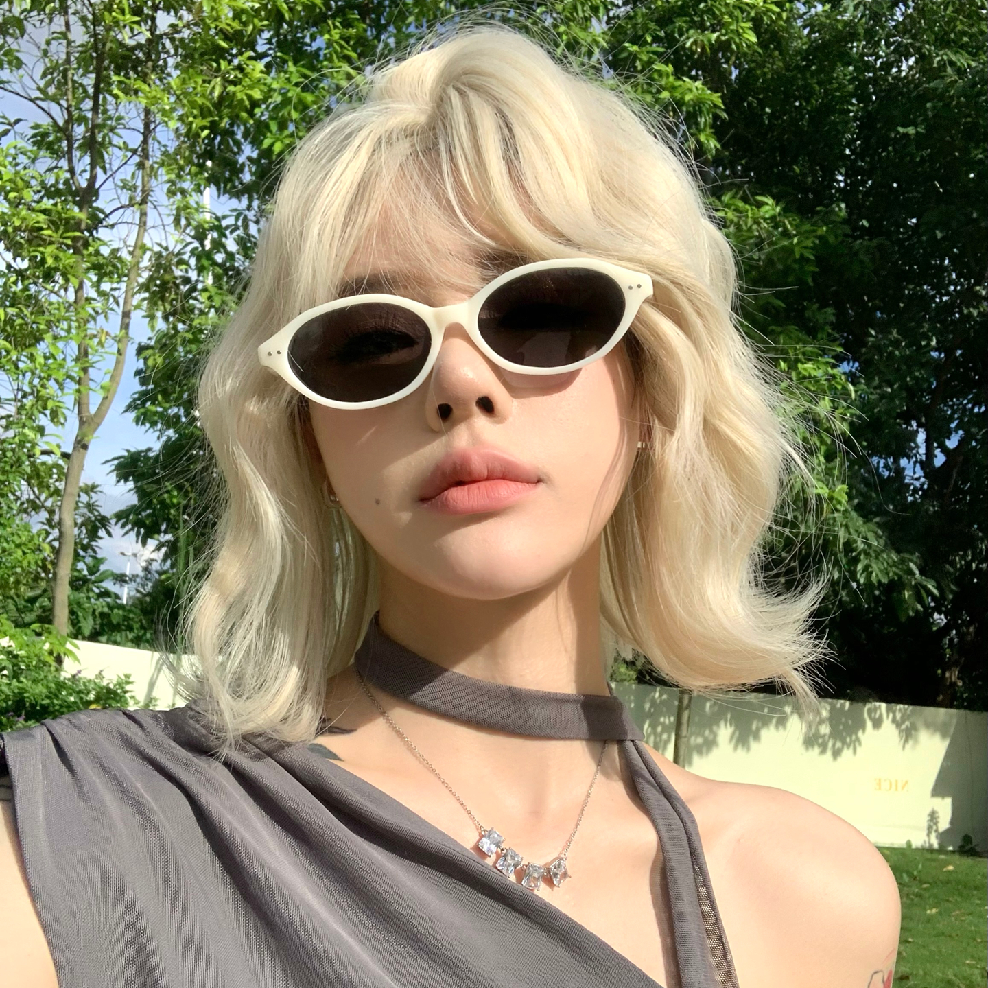 复古辣妹风珍珠小框白色猫眼墨镜女2025新款高级感方圆脸太阳眼镜