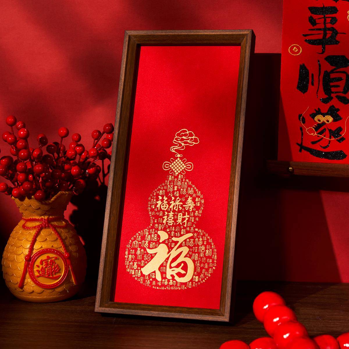 福禄寿喜财布艺刺绣织画新年春节喜庆装饰相框摆件新中式客厅摆台