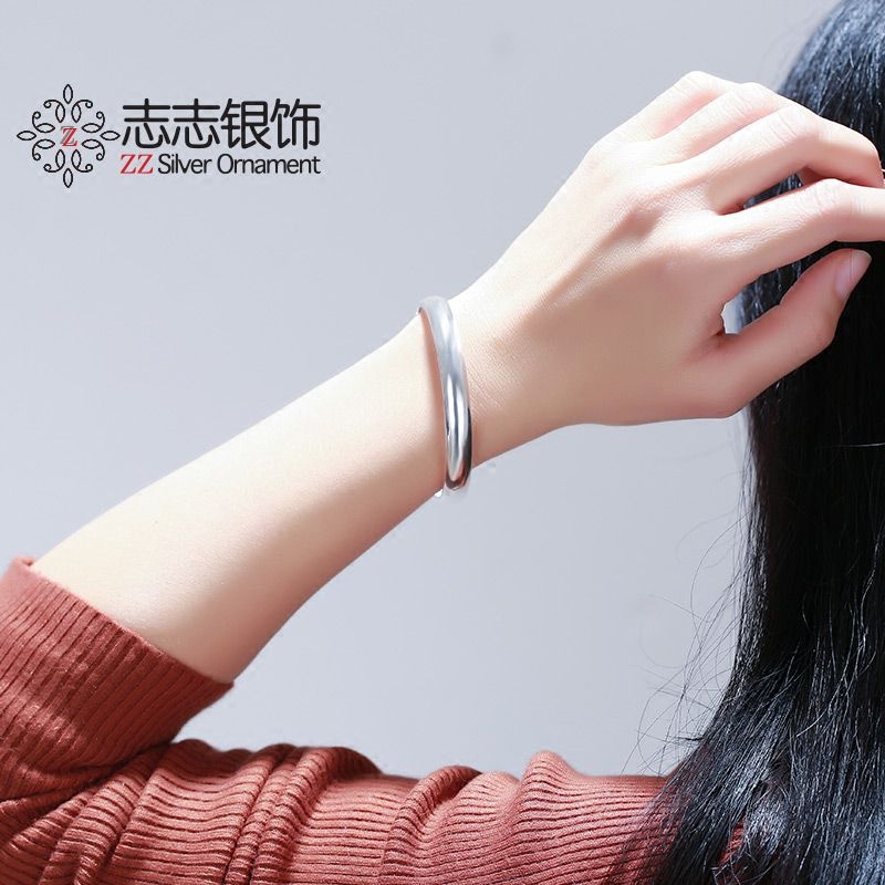 纯银手镯女手工光面宽扁形闭口实心999银镯子女款定制送女友妈妈