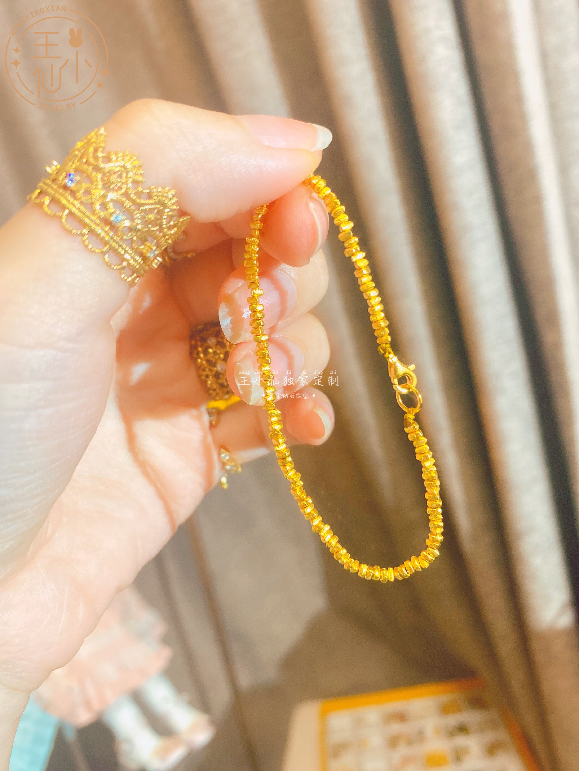 999足金手工古法金几何三角形切片小碎金岁岁平安素金手链