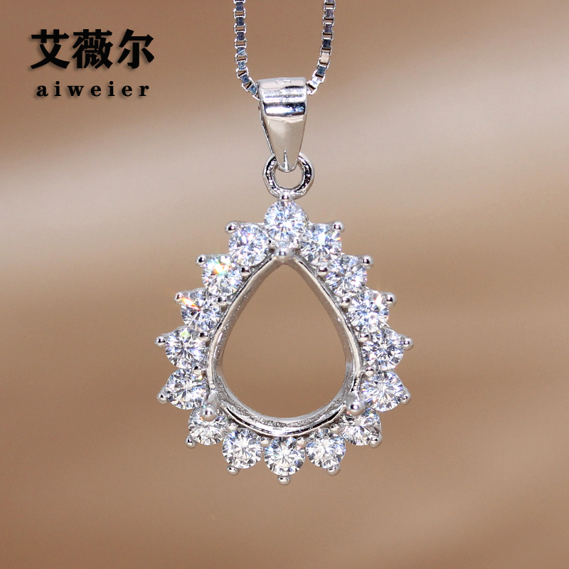 925纯银戴妃款吊坠银饰空托水滴形梨形围钻代宝石镶嵌4*6-10*14mm