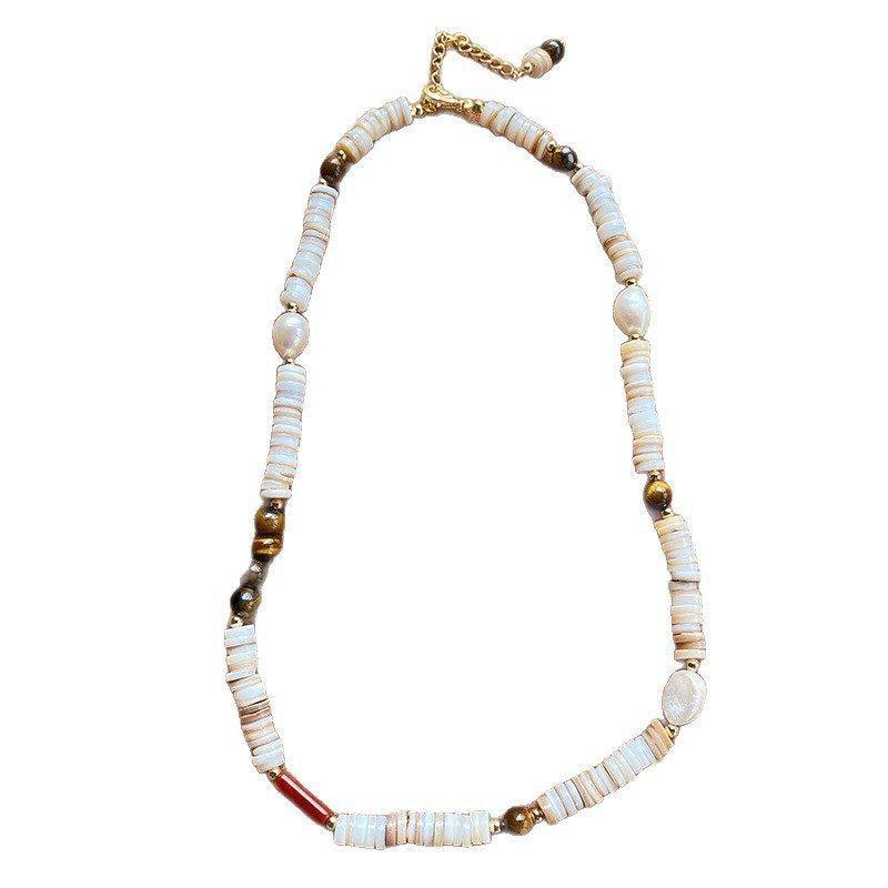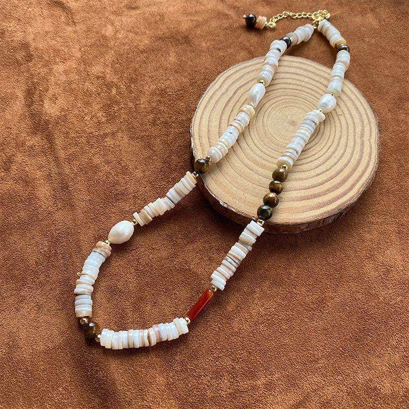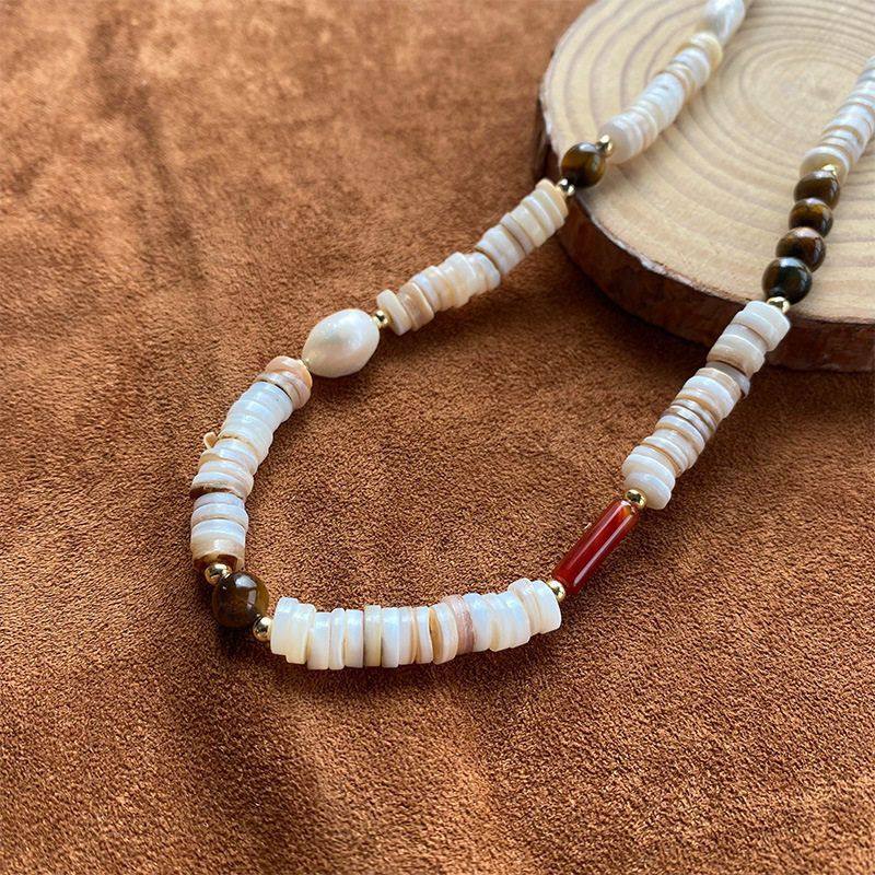 天然淡水珍珠彩色贝壳虎眼石串珠项链女轻奢小众2025新款毛衣颈链