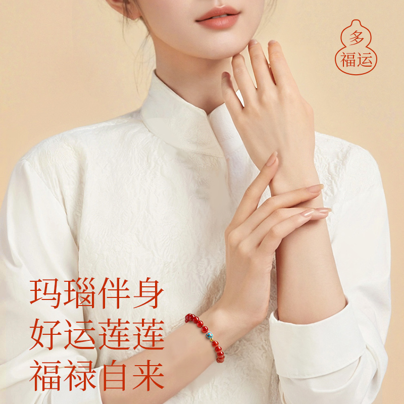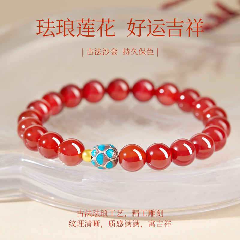 官方旗舰店正品红玛瑙手串女款天然水晶转运珠好运莲花玛瑙手链女