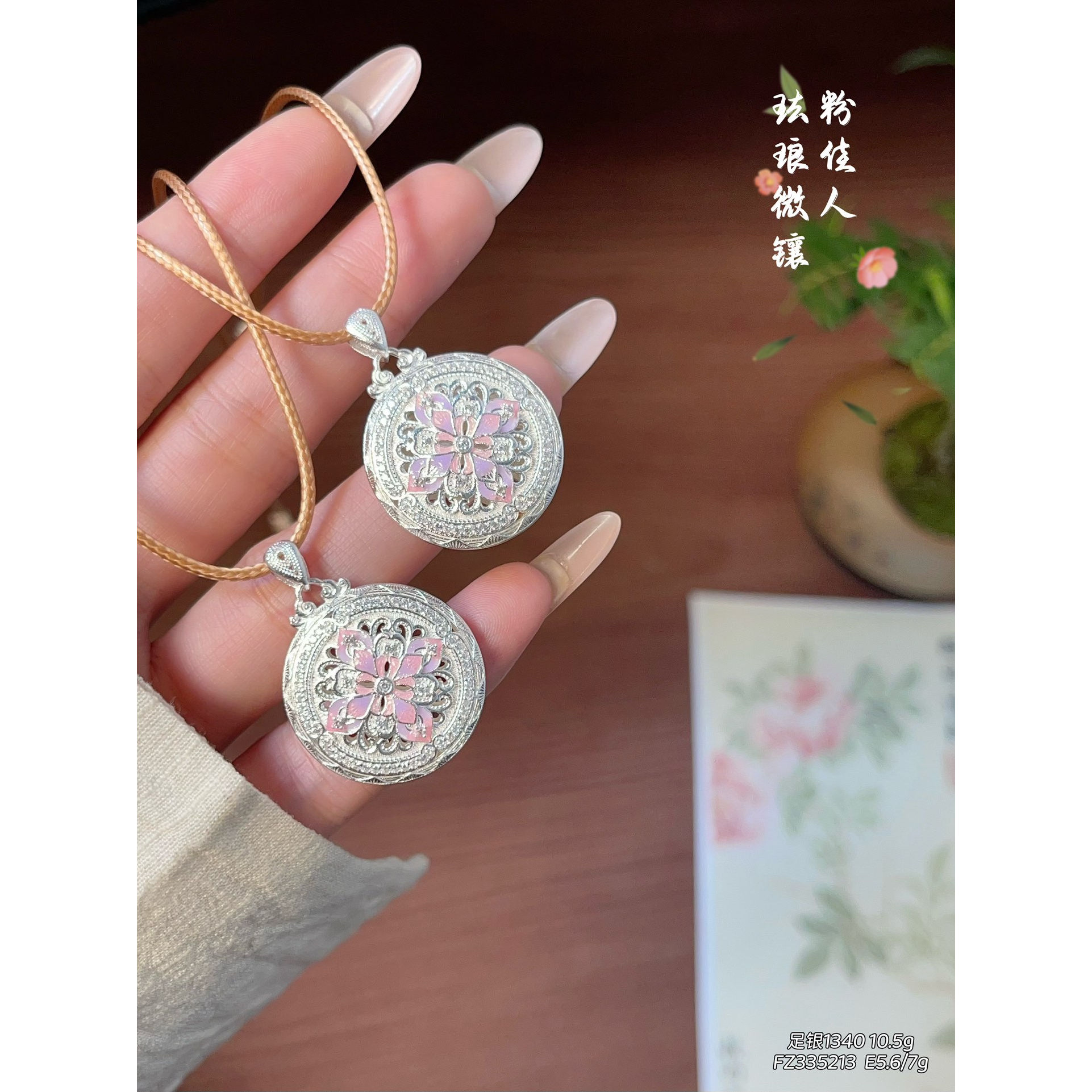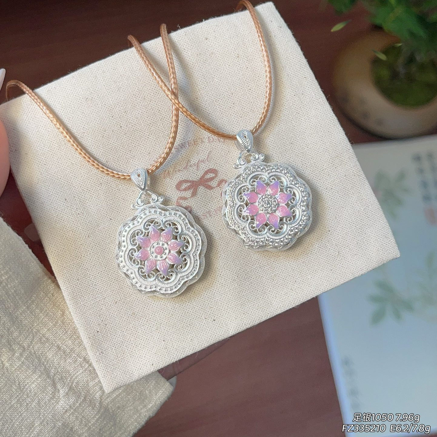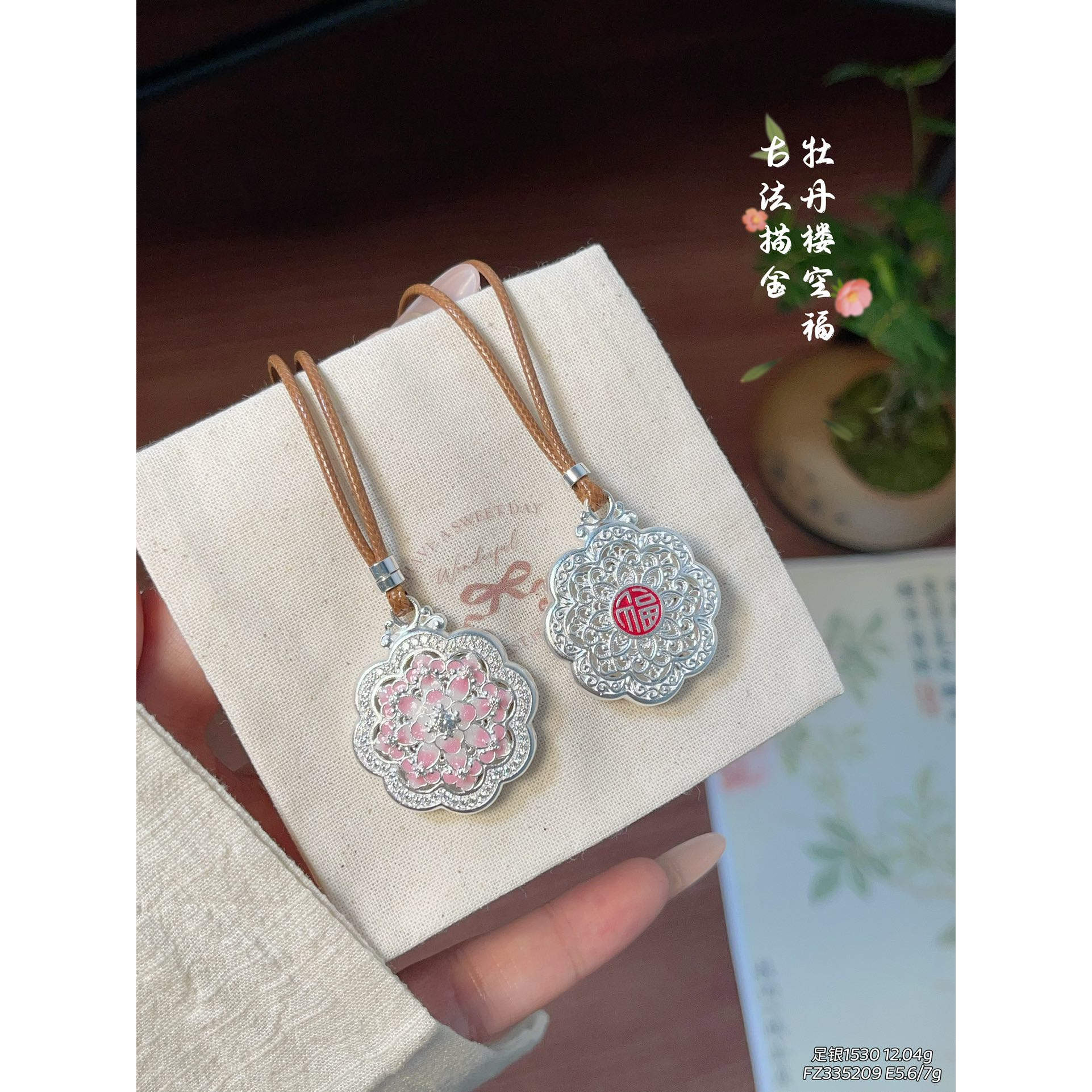 香港正生纯银999足银牡丹珐琅彩吊坠项链中式复古国潮民族风礼物