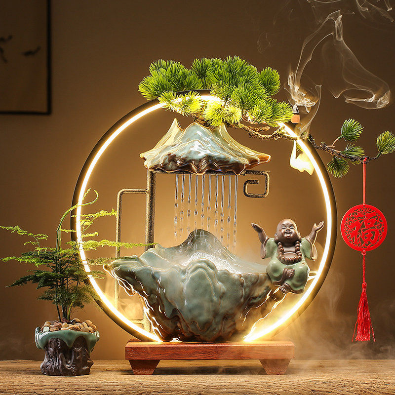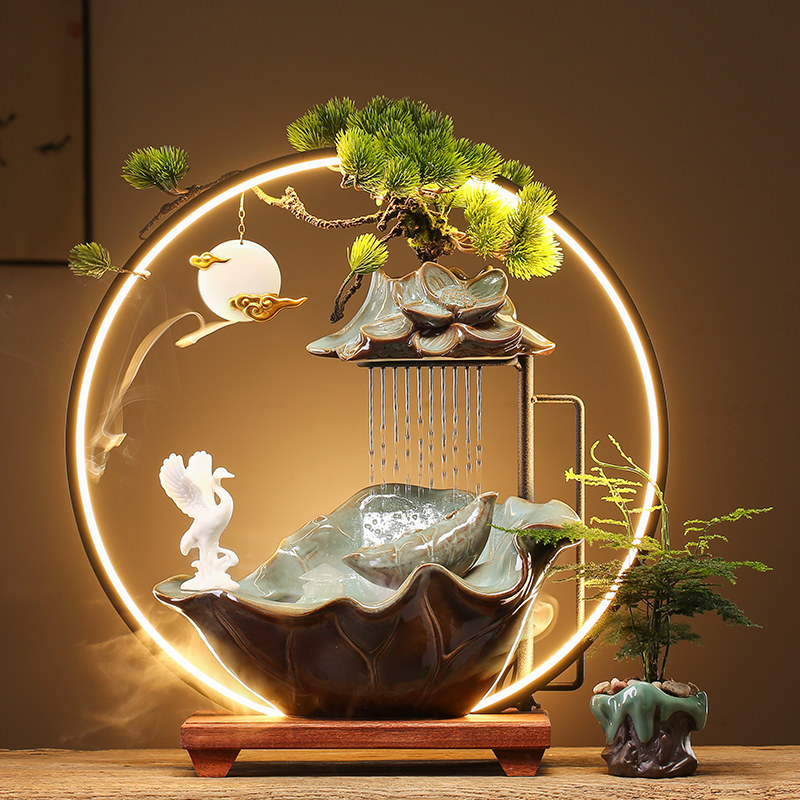 流水摆件循环水创意办公室茶桌面客厅装饰品生财摆件家居开业礼品
