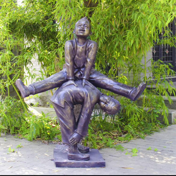 玻璃钢仿铜学生人物 户外校园摆放骑自行车学生运动人物雕塑定做