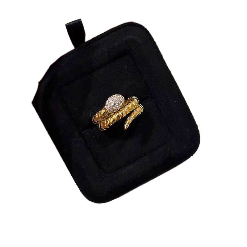 新款中古爆闪满钻缠绕蛇头灵蛇戒指复古本命年多圈金色食指戒