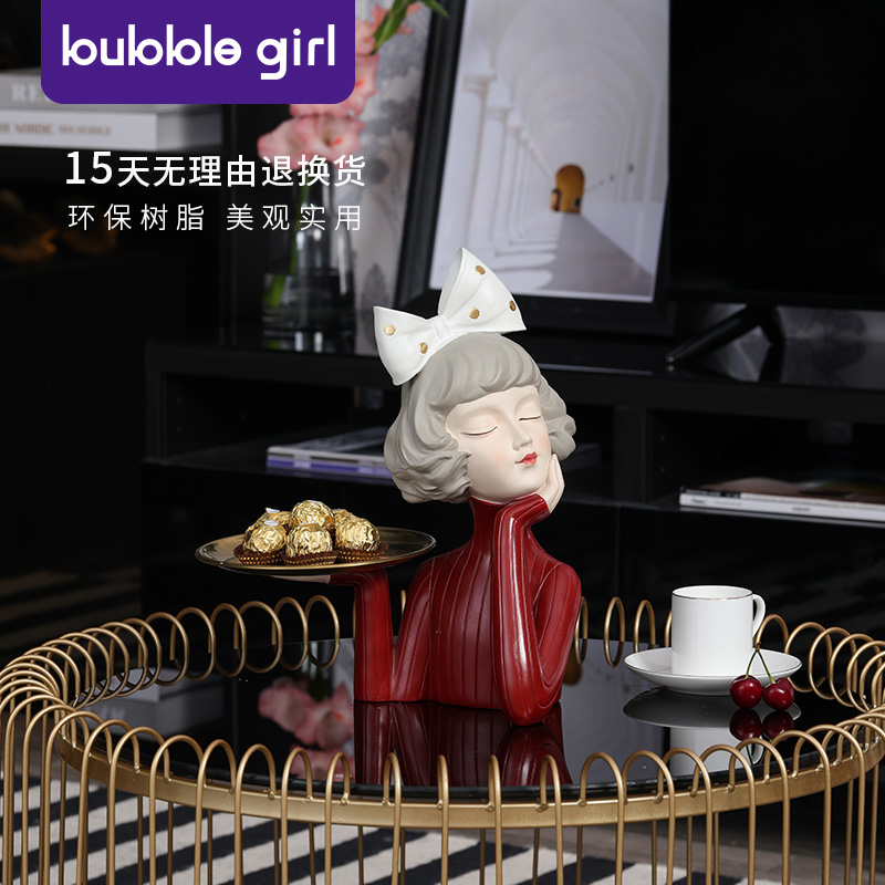 蝴蝶结女孩钥匙收纳摆件入户玄关托盘门口装饰品餐桌零食置物盘